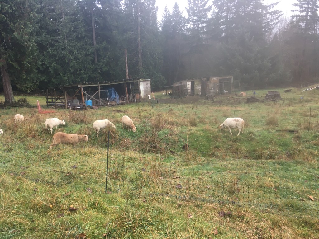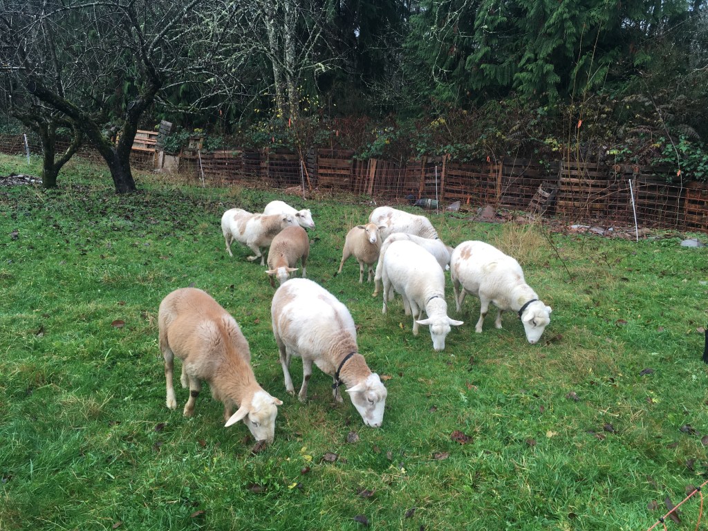 Winter does signal a slowing down in production. Our hens are laying at about 40% normal rate, so we’re averaging 1/2 dz. each day. With the introduction of more layers, we hope to operate in future at a dz. each day in winter, for neighborhood orders, and we’ll sell our warm month production to Cascadia Cooperative Farms. The sheep keep eating, putting weight on, and are hopefully also growing lambs in their bellies. It’s amazing to me that during winter, most animals in the grazing world are gestating next year’s offspring. They have great fresh food, and additional alfalfa hay in the barn on colder or wetter evenings.