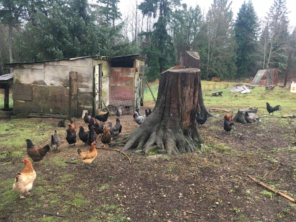 This year, I hatched an experiment of winter chicks, which have thrived quite well in our crisp fall days. I’ve been impressed with their hardiness, and the subsequent bulk they have gained with forage and organic starter feed. Last week, part of the young flock was moved into the coop with our layer hens. Their free range diet across the landscape includes grass, herbs, insects, and other microscopic creatures which enrich the birds’ eggs. The pasture is still green, even after heavy frosts, which began on the last day of September this year (2019). Our sheep just had two sunny days grazing, in early December. In New England, The Rocky Mountains, and central Great Plains, winters are brutal, often windy and well below freezing. Here in Western Washington, being outside in a cotton long sleeve t-shirt and jeans at the start of winter is a real treat- not to mention a lack of pesky frost-bite, frozen water buckets, and snow.