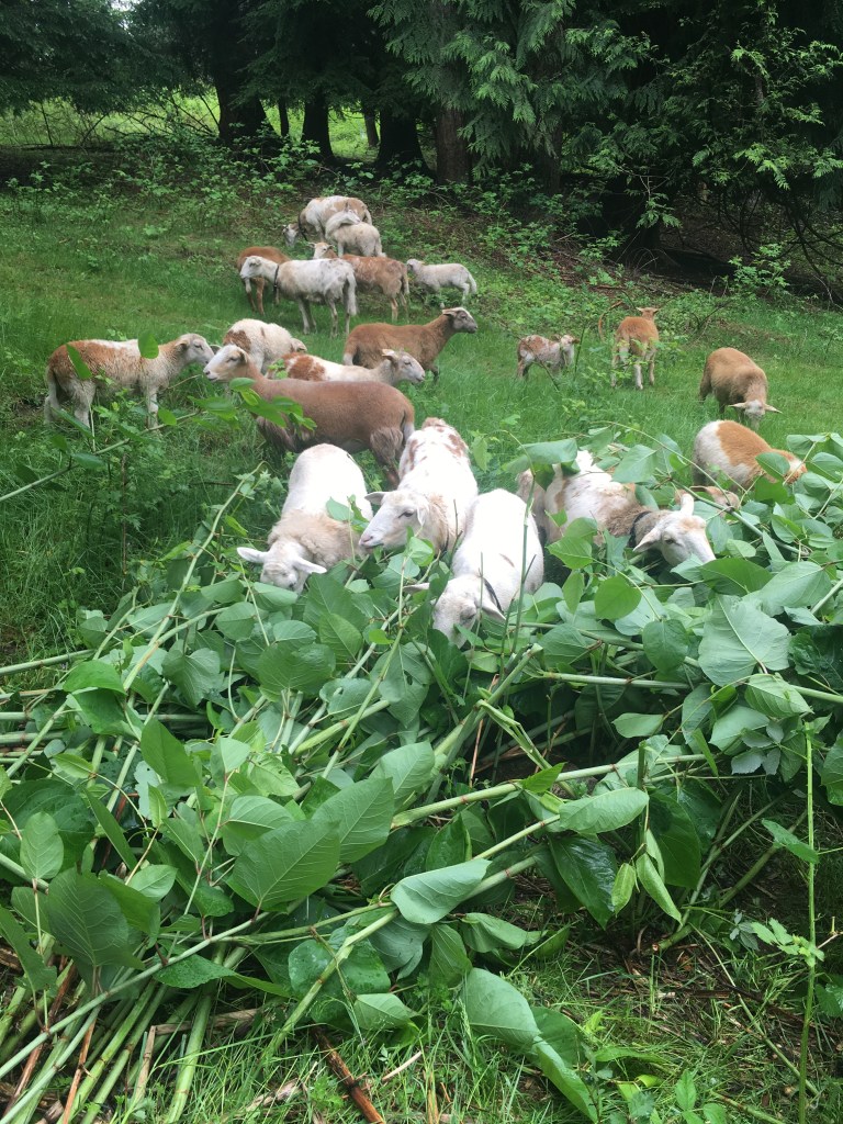 The grass is growing fast as hooved herbivores process the landscape. What a transformation we’re witnessing- mere grasses, forbs, and shrubs turn into prime lamb deliciousness. The sheep are entirely driven by mowing down lush green pasture, something EEC Forest Stewardship has. Though some of our pastures are transitioning into old growth forest, that shift will take generations, and intermediate care of the still open ground between plantings should be managed to ensure healthy restoration. Blackberry and grass are tenacious tenants of the land, and shading them out with trees is the slow, but effective answer.