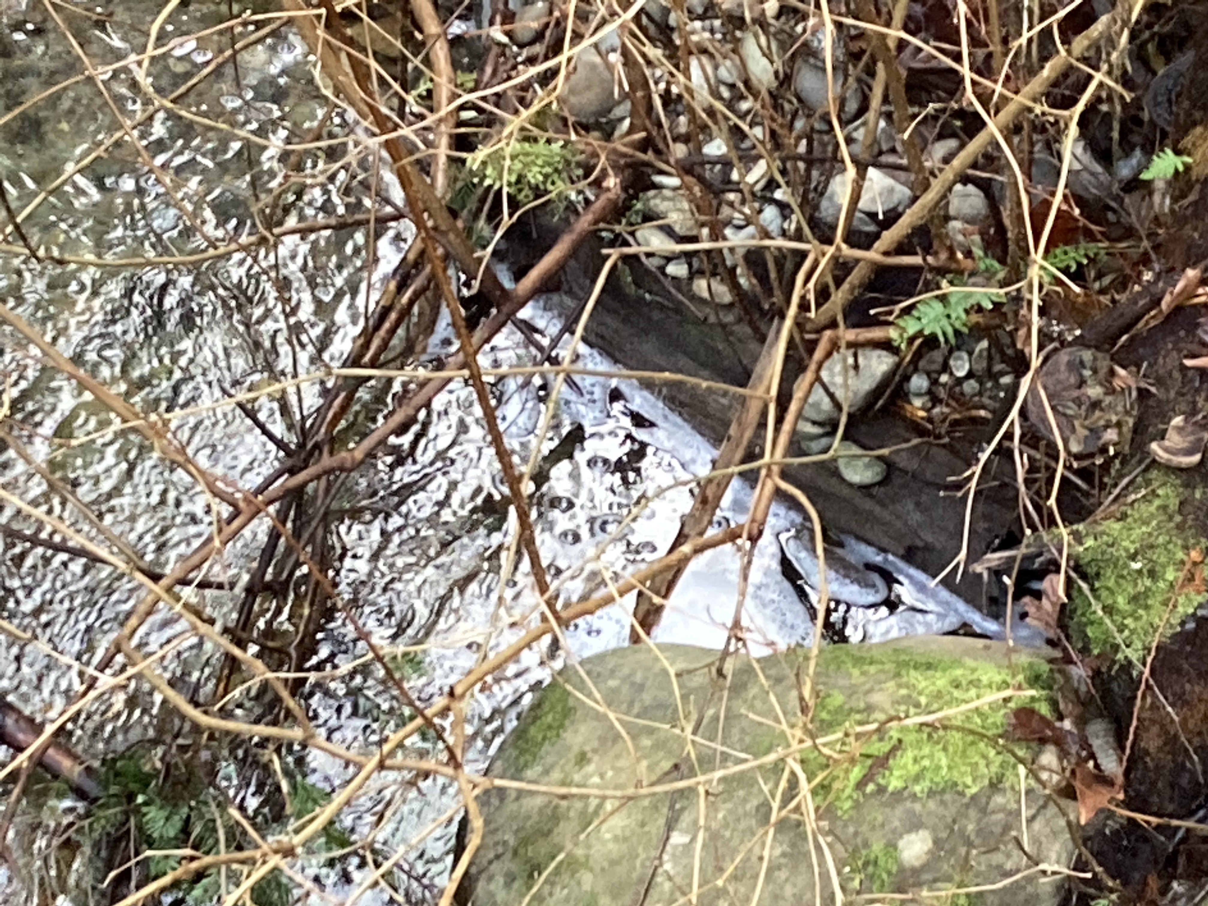 My concern was the volume of soap running in the stream. I’ve seen suds once in a while during major runoff periods, but nothing like this on a normal flow day. The most likely culprit- inappropriate tie in of laundry facilities too close to the stream. It’s one of the most common hazards to wild water in our county. So much bad runoff like this occurs, that the county will not make an official report until summer, during the driest period of the year, when there is little runoff to track from the creek back to the source. My local water ecologist said it was not enough runoff to address with legal action, but what about a formal site visit to fix the runoff? Nope, not without serious concern. It was hard to hear this, knowing more laundry would be draining into Weiss Creek.