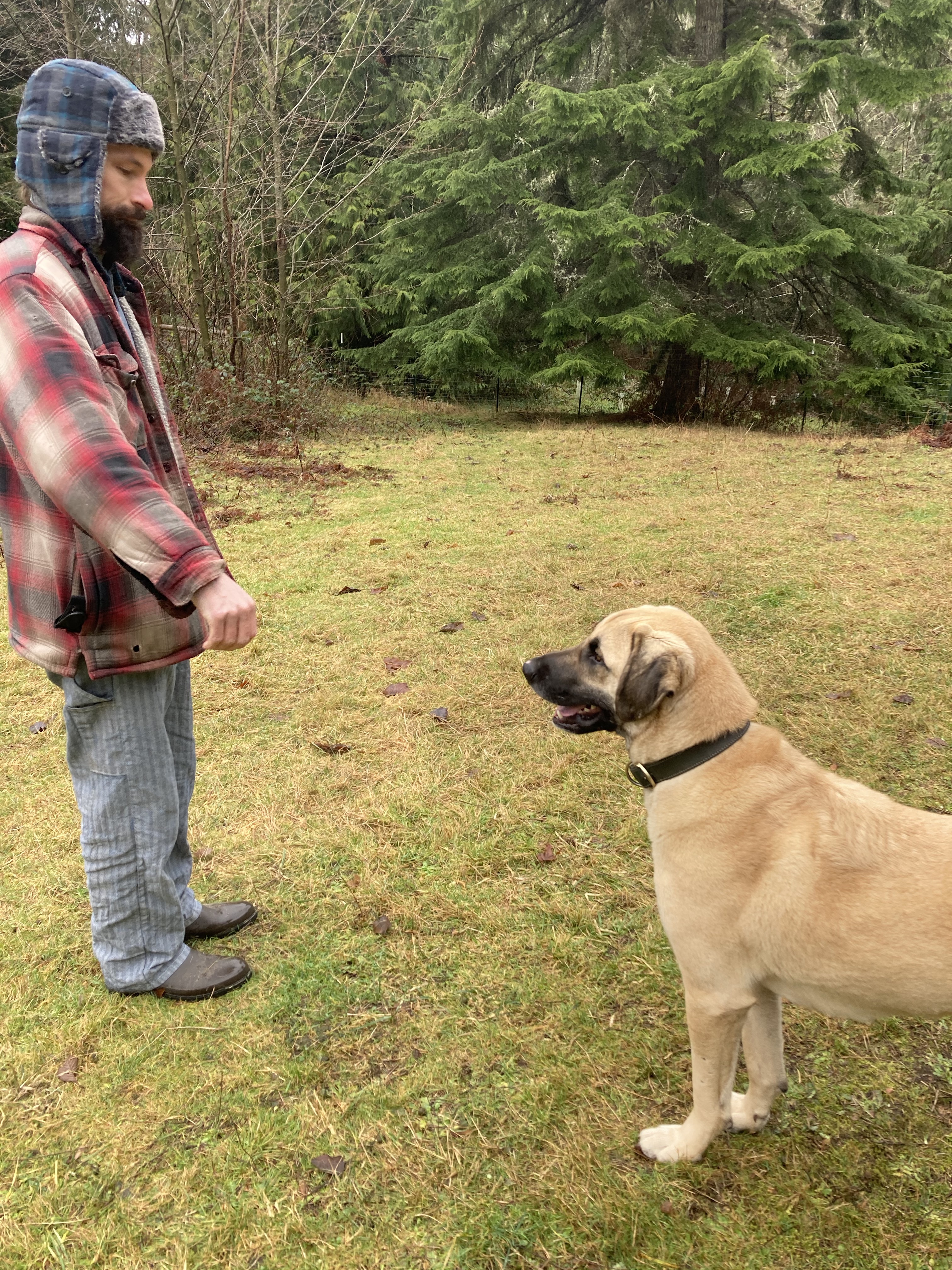 Our new Livestock Guardian Dog, Gill, has been a wonderful addition to the stewardship program. He continues to show great social ability and good manners at EEC. With a lot of good structure, routine, and patience, I’m learning how the Kangal (Anatolian) Shepherd works and plays. Gill has become good friends with Valentine, and the two can play for hours while I’m working in the field nearby. Though Gill came to us with a history of dog aggression, especially with toys and food, we have slowly been working on these behavioral challenges, and found that most of them melt away once Gill began to trust Valley as a balanced animal. She has never shown any possessive behavior, and happily drops a stick or bone if Gill wants it- he in turn grows tired of grabbing things the other dog could care less about, and goes back to his watch on the sheep. With his natural instincts fed, Gill shown no interest in what might be called delinquent behavior. It’ a win win for us and the dog.