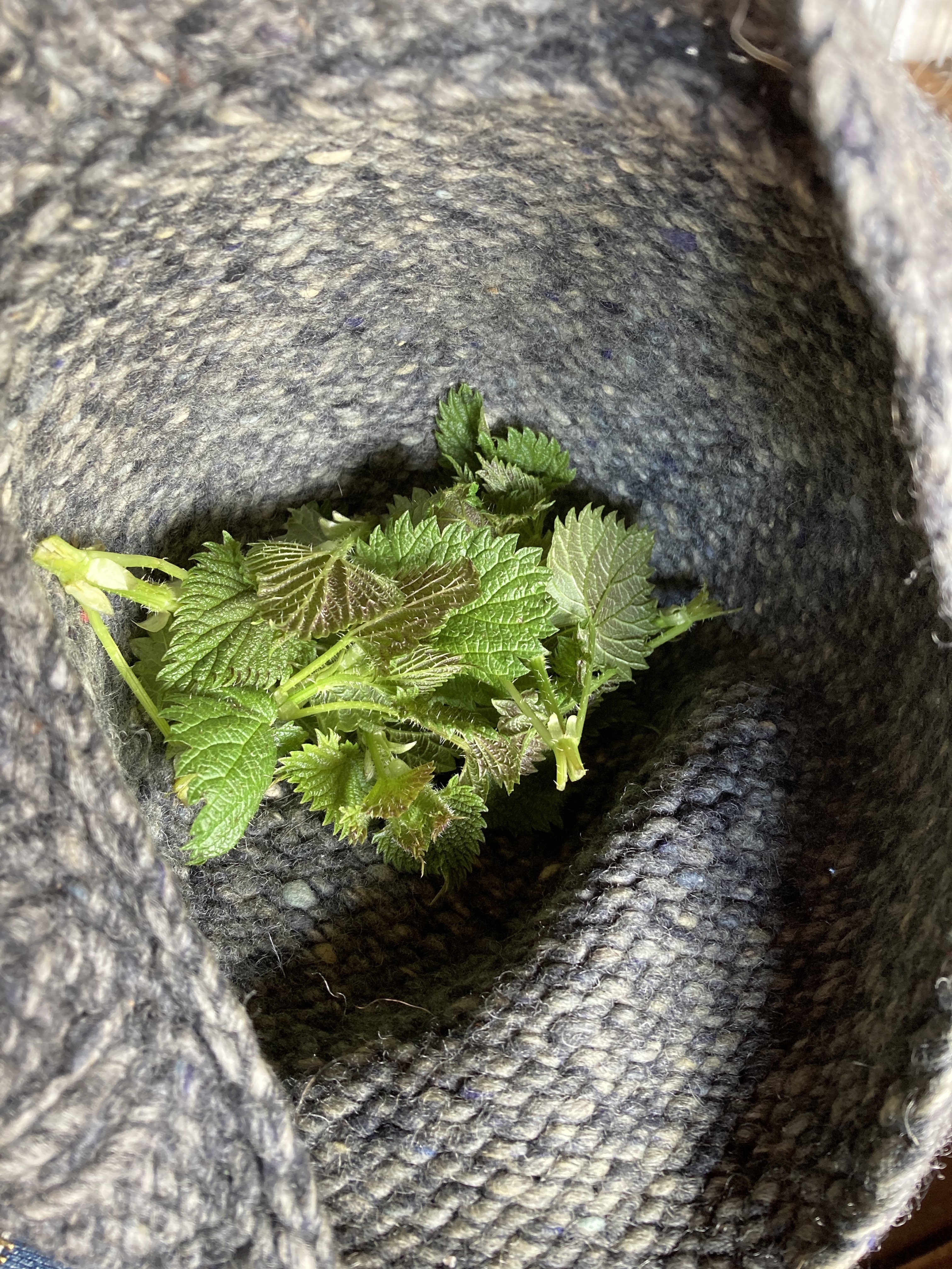 While wandering beneath the cottonwoods picking up bud branches, I also came across one of my other favorite plants on the landscape. Stinging nettle is often overlooked as a hazard species, much like cottonwood, but again, all plants have a purpose, and that endeavor may precede human needs. In the case of nettle, human needs are met in so many perfect ways- this plant is edible- and more nutritious than spinach. It is a medicine, both topical and internal for different ailments. The stalk produces workable fibers, and offers a great soil conditioner to build up great fertility in disturbed ground. In the Spring, it’s best to harvest the young top leaves of nettle. In Summer, harvest the seed and stalk, and in winter, cut the stalks down to condition soil. I often see this plant pushing up new growth in January, so its one of the earliest edibles to come on as the seasons change. The sting is also a blessing in disguise, offering a zing of pep to the nervous system, and easing arthritis inflammation. I picked a handful bare handed for lunch, rounding out my gathering venture with healing and sustenance. What amazing gifts the land offers to those who know what to look for.
