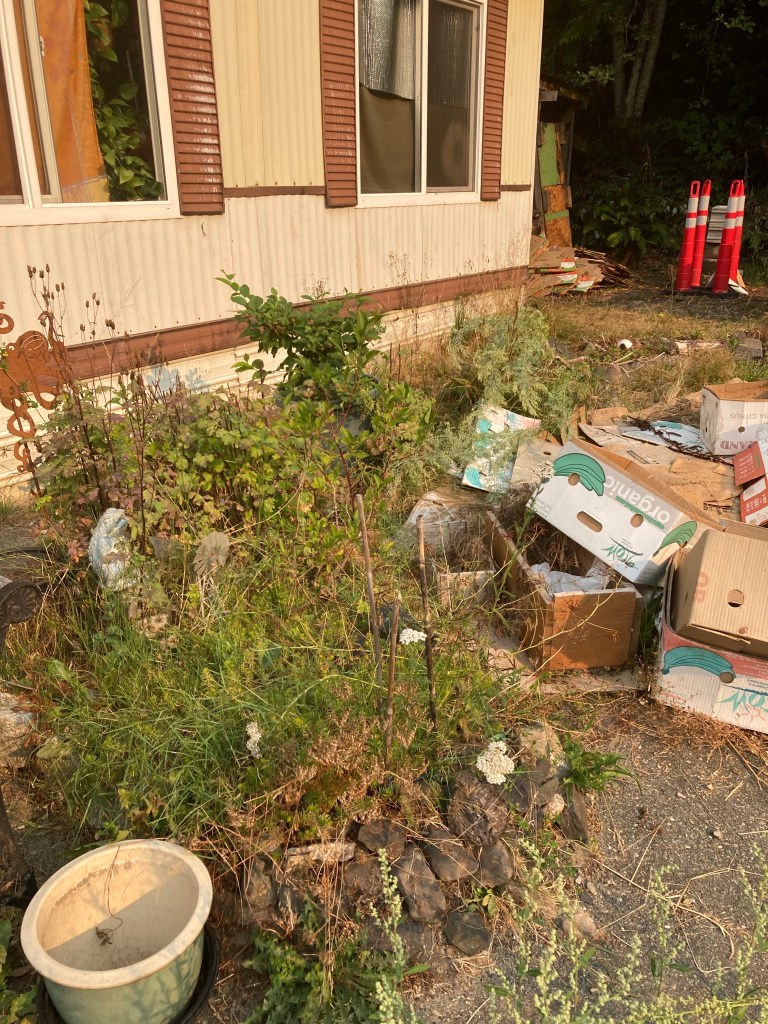 This spring, I wrote about taking up the sod around these beds in an attempt to get ahead of the fertility spill. It was an ok plan, and produced a lot of good topsoil for a nearby berm, but the grass still persisted, and now I’m laying cardboard which I plan to seed over with wildflowers this fall. Once I took up the grass sod, a few places where the gravel was still present underneath, other “weeds” like lambs quarters (Chenopodium album) and Catsear (Hypochaeris radicata) are showing up, and I’m much happier to host these edible species, which are much easier to manage in the garden.