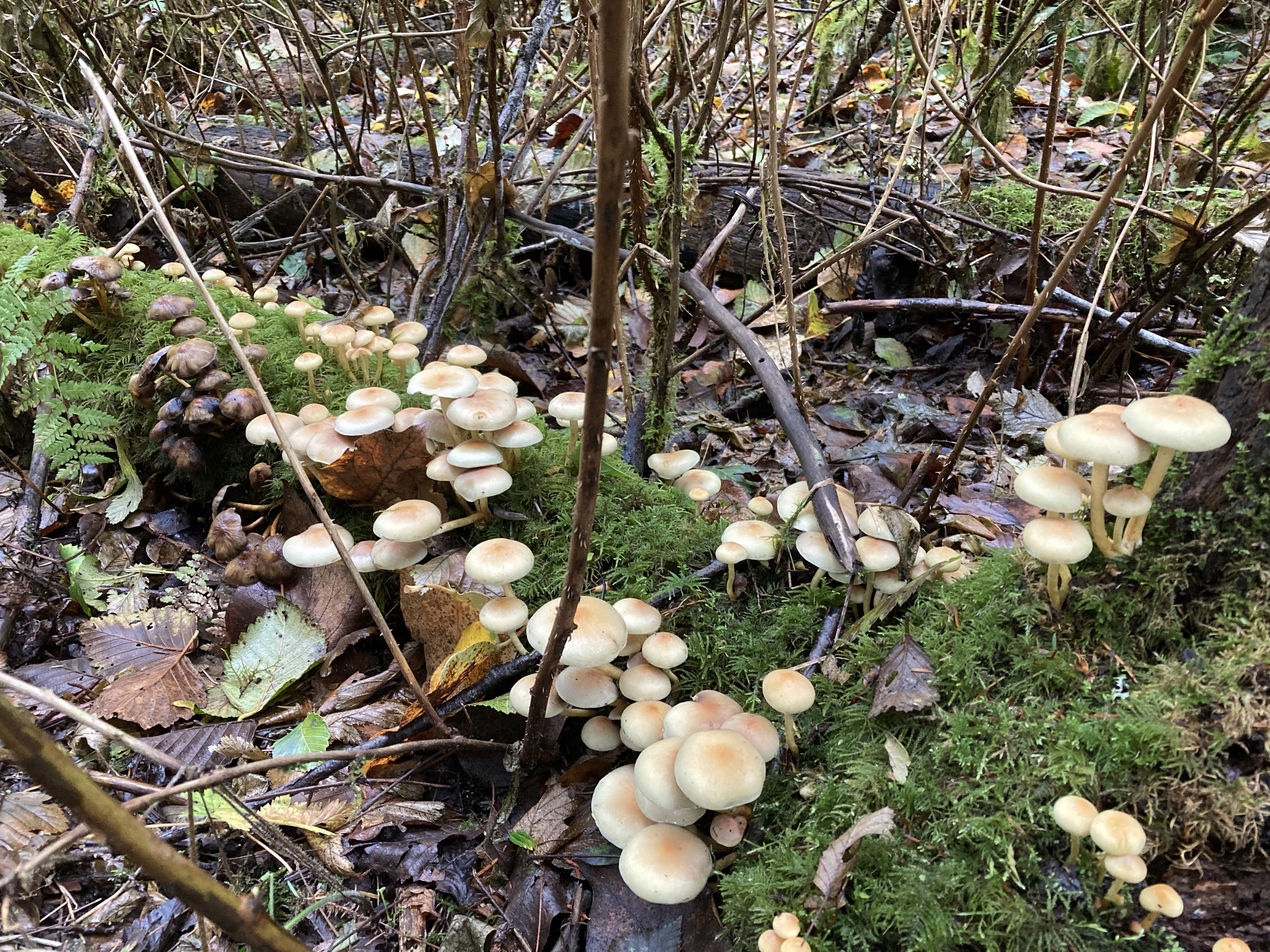 These queen boletes were spotted in an earlier picture- did you see the bulbous chocolate cap? Try bottom left of the group pic. See it? Well, I didn’t- at first, and it took my partner to point out the larger flush of these highly desirable edible mushrooms. What a delightful reward, but it was unexpected, and not a requirement for us to get some good fungal learning in Western Washington.