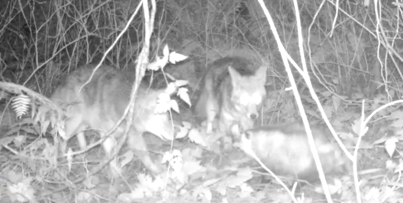 The trail-cams here at EEC Forest Stewardship show us glimpses of a rich and thriving habitat for our wild forest friends. This Fall, during the slaughter season (we process our domestic animals on site), we do not waste any part of the carcass, placing awful and bones not used out in a safe place on the land for wild creatures to partake of. By safe, I mean a place away from our livestock and living space, down by the creek in the wildlife corridor. There we know cougar, bobcat, bear, coyote, opossum, raccoon, and more thrive and jive. Here are some recent images of the greater community of animals EEC calls neighbors and friends. For some, these wild animals might seem like a threat or danger, but the animals were here long before us, and we have great respect for them on the landscape. Our hope is to work in harmony with all living things in the forest, creating safe space for all things to live in peace.