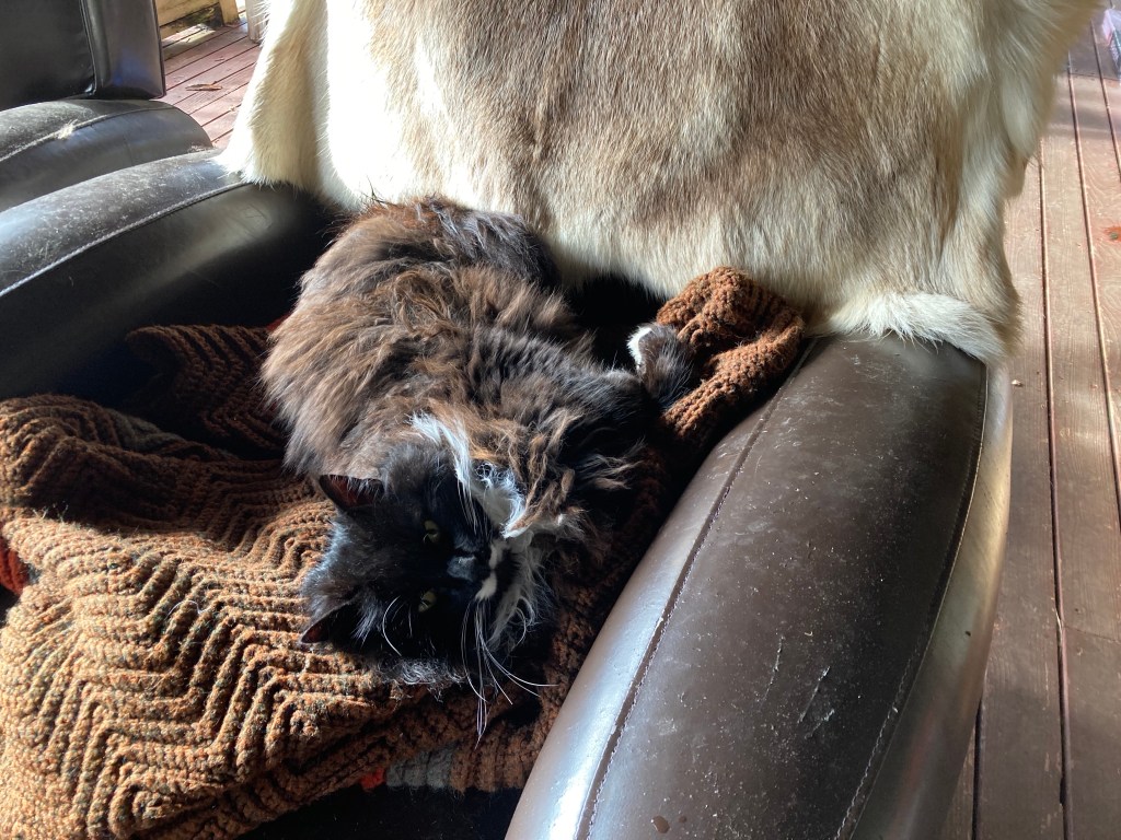 Our 4th cat, a rescue from the COVID related moving crisis of a friend’s parent, has lived a good life with us for a few years, but has not melded into the rest of the pride with any effort. In fact, he’s apt to terrorize the other cats at will, which has not endeared him to us any more than the other cats. Recently, a friend hit it off with him during a cuddle session on the porch, and seemed to really enjoy his company. We know she would be a great cat mom and have offered him to her in hopes he can become a single familiar where other cats will not be a problem. Though the farm is perfectly capable of hosting 4 cats, and might again some day, our three who make up the main feline family at EEC are more than enough in rodent management. We’ll always have at least two cats if any, because they do better with a buddy, especially learning the ropes of being outside in this environment. I’ll often see two cats curled up together for warmth and safety, which is an important survival technique around here. Stay together and you’ll live longer.