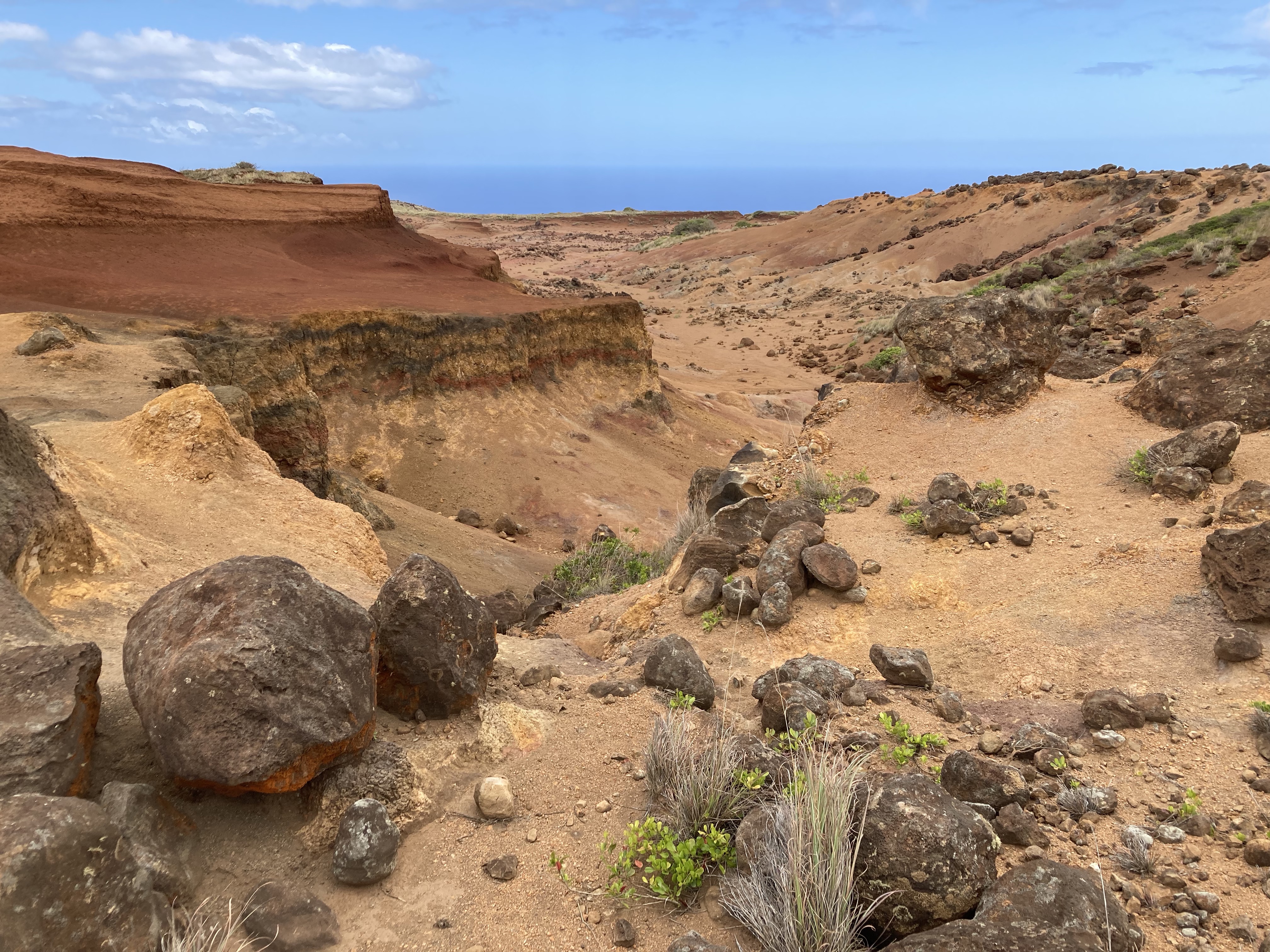 Another similarity between Oklahoma and Hawaii that might have felt like home to my grandfather when he was stationed in The Pacific Theater, was the rich red earth. Though these two states are separated by thousands of miles, they share a similar red dirt, and this familiar site across the landscape is echoed in dry, arid hills in places like Maui and Lanai. Though Hawaii is tropical, it also hosts many arid places where rain is blocked by higher mountain peaks. Hawaii’s red soil is “oxi-soil”, related to tropical environments. In Oklahoma- Mollisols, Entisols, Alfisols deposits- “Central Rolling Red Prairies” are the lands of our Oklahoma family roots. Rolling grasslands and sandy deserts bring an additional lunar landscape to a set of islands more associated with palm trees and jungle depths. The geology spans a million years or more; still, these lands have formed in the same epoch, and that’s a single generation in geological time.