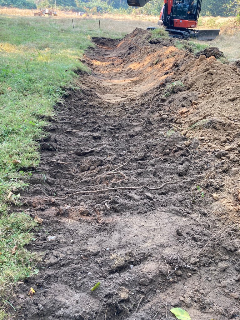 EEC Forest Stewardship is getting some surprise earthworks at the end of September 2022. Our luck in having a neighbor with excavator and a week of time to share in helping us get some swales dug in our fenced pastures a decade ahead of schedule. The neighbor has been very generous with his time to come over, and another neighbor was generous enough to let us drive the machine through their property into our back field. Cooperation like this between neighbors is so special, and we’ll continue the generous exchange with pet and farm sitting, labor sharing, and even free consulting in land design and animal system setups. It’s a win win for all involved on the land.