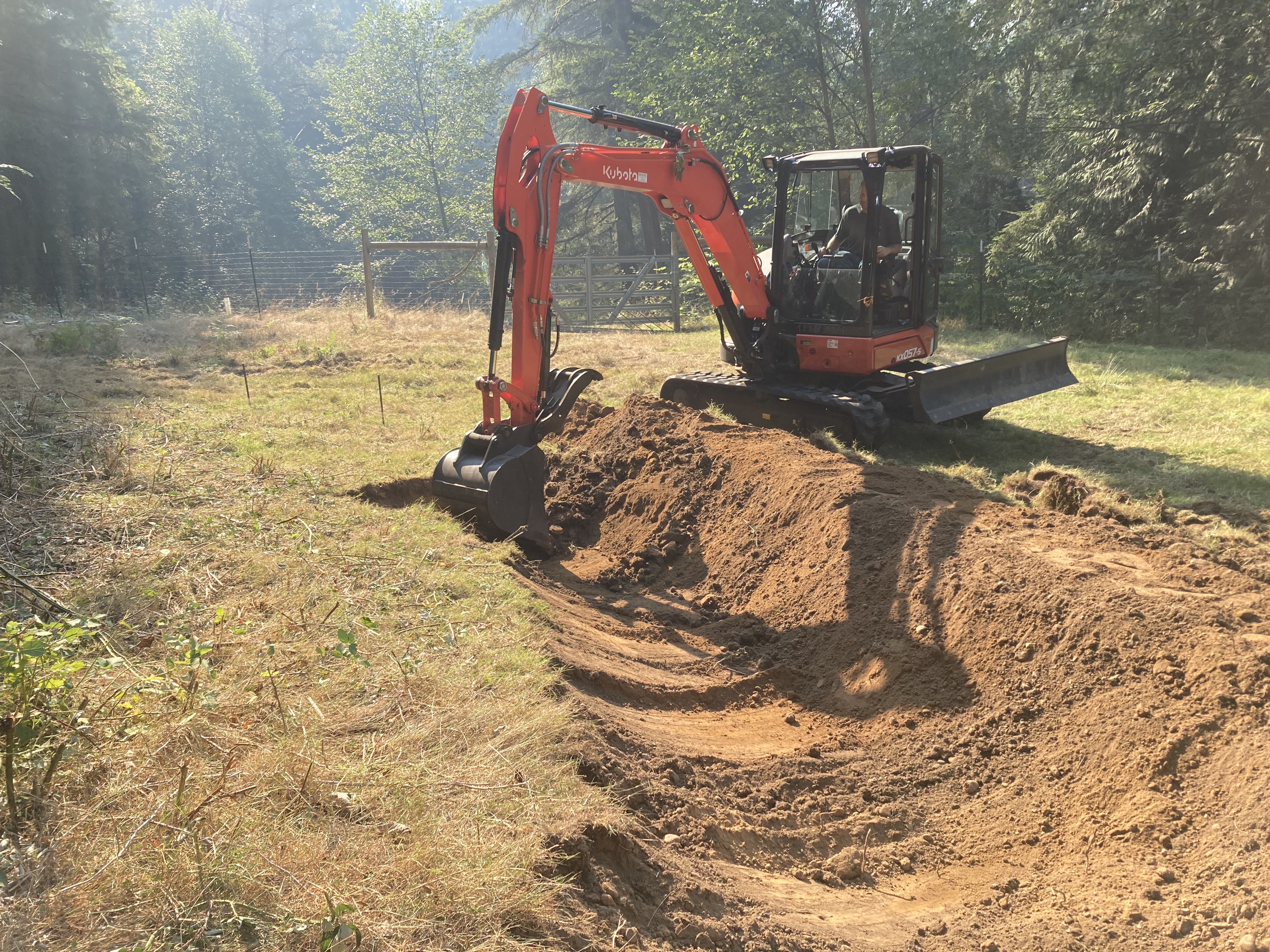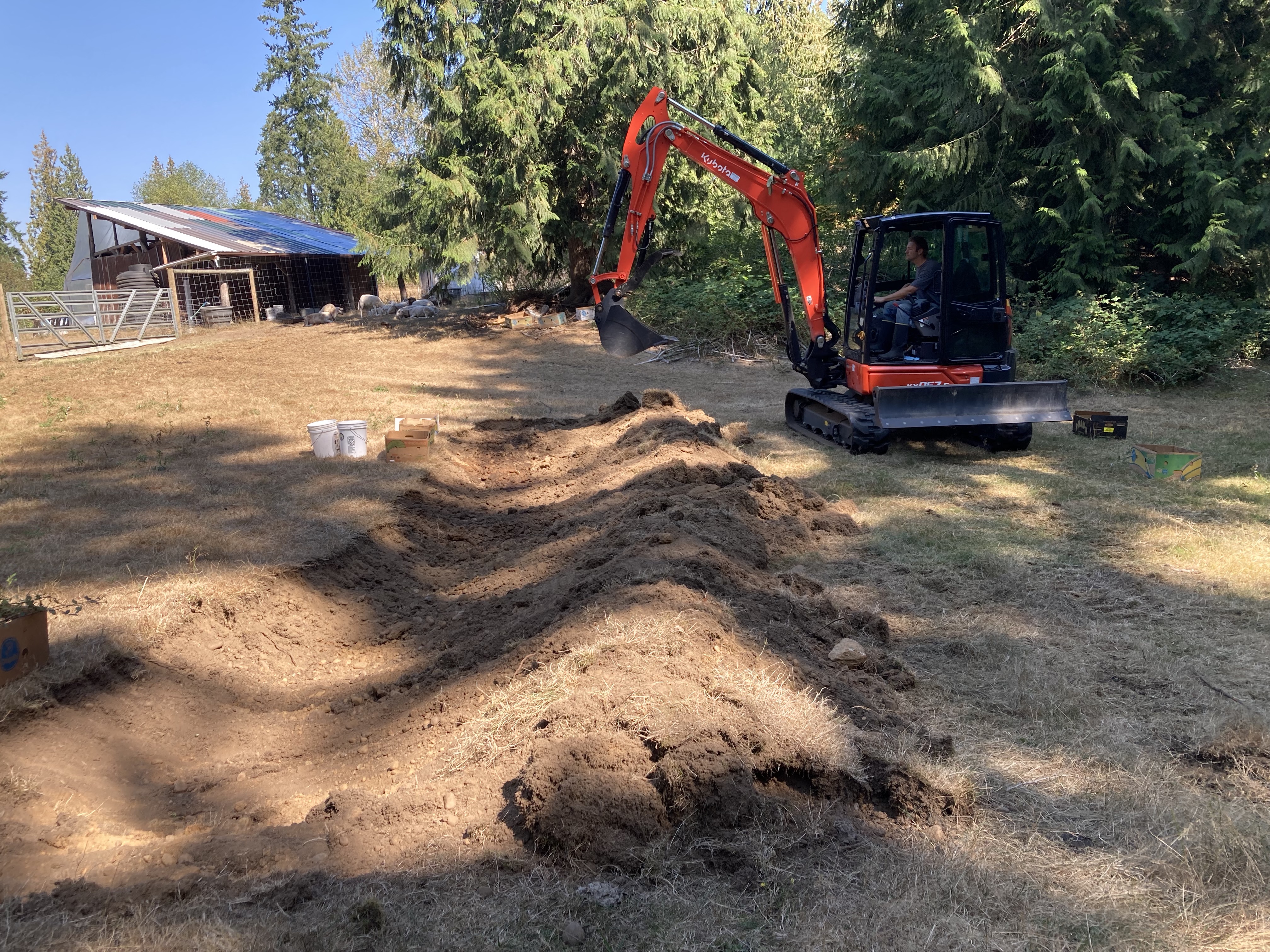 EEC Forest Stewardship is getting some surprise earthworks at the end of September 2022. Our luck in having a neighbor with excavator and a week of time to share in helping us get some swales dug in our fenced pastures a decade ahead of schedule. The neighbor has been very generous with his time to come over, and another neighbor was generous enough to let us drive the machine through their property into our back field. Cooperation like this between neighbors is so special, and we’ll continue the generous exchange with pet and farm sitting, labor sharing, and even free consulting in land design and animal system setups. It’s a win win for all involved on the land.