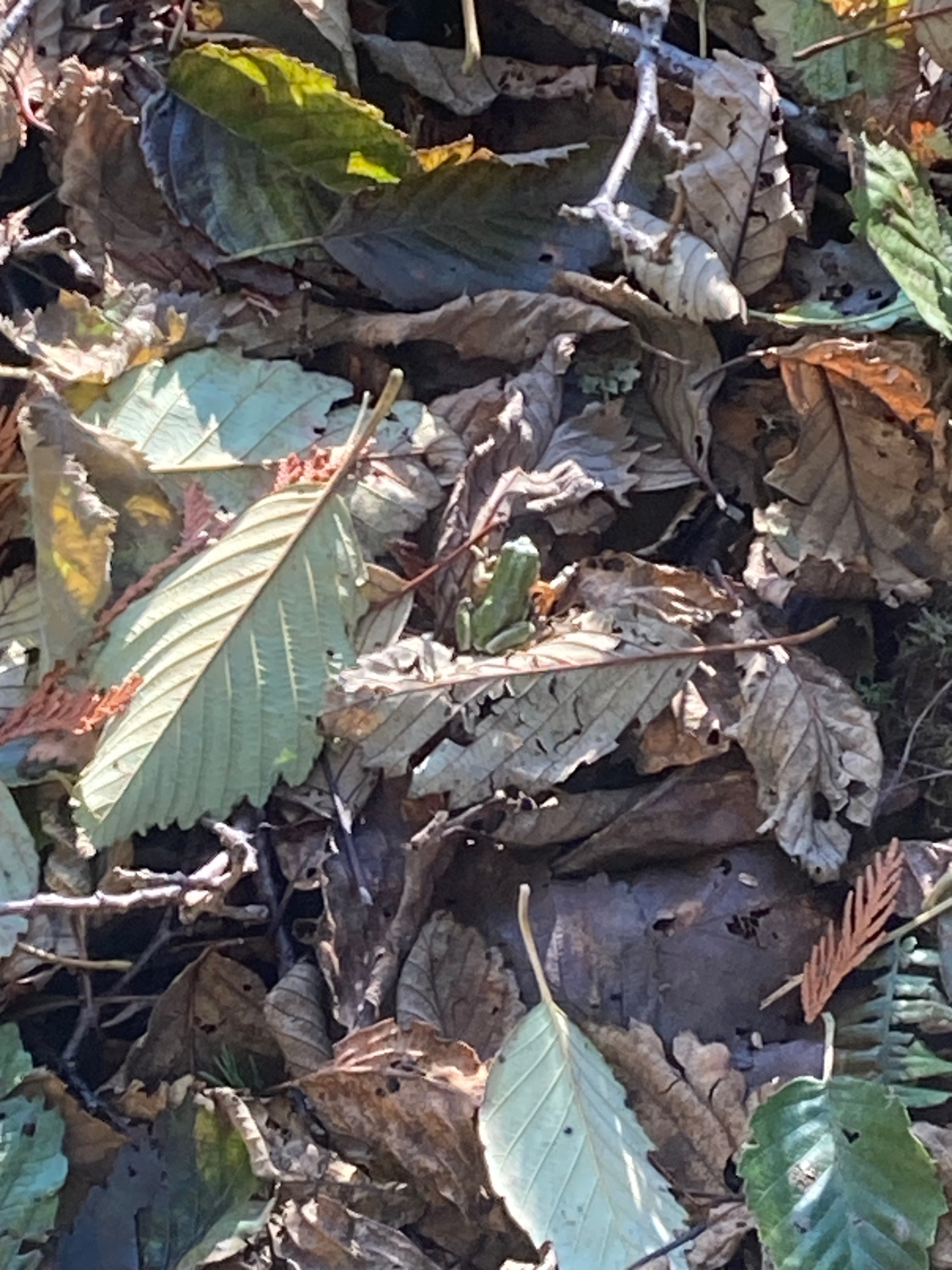 As I worked at replanting, this Pacific Tree Frog appeared. The living forest is alive, in small ways, as well as towering trunks and lofty bows. So many layers of complex ecology, with a few surfacing signs that the original people are still there, thriving, adapting, and ready to come back when invited. I plant them in invitation, thanking everything for being present. Even the Japanese Kotweed is telling us something- disturbed soil, too much sun on a ground that should be shrouded in old growth. The same with blackberry- you won’t find it in a deep, dark forest of older stands. Bring back the trees and you have layers, diversity, and balance in the intended ecology. Where the forest thrives, birds sing, bugs hum, and the joyful spirit of nature abounds. Slowly the vibrant colors of life return. Planting, planting, planting love and gratitude with every handful of soil.
