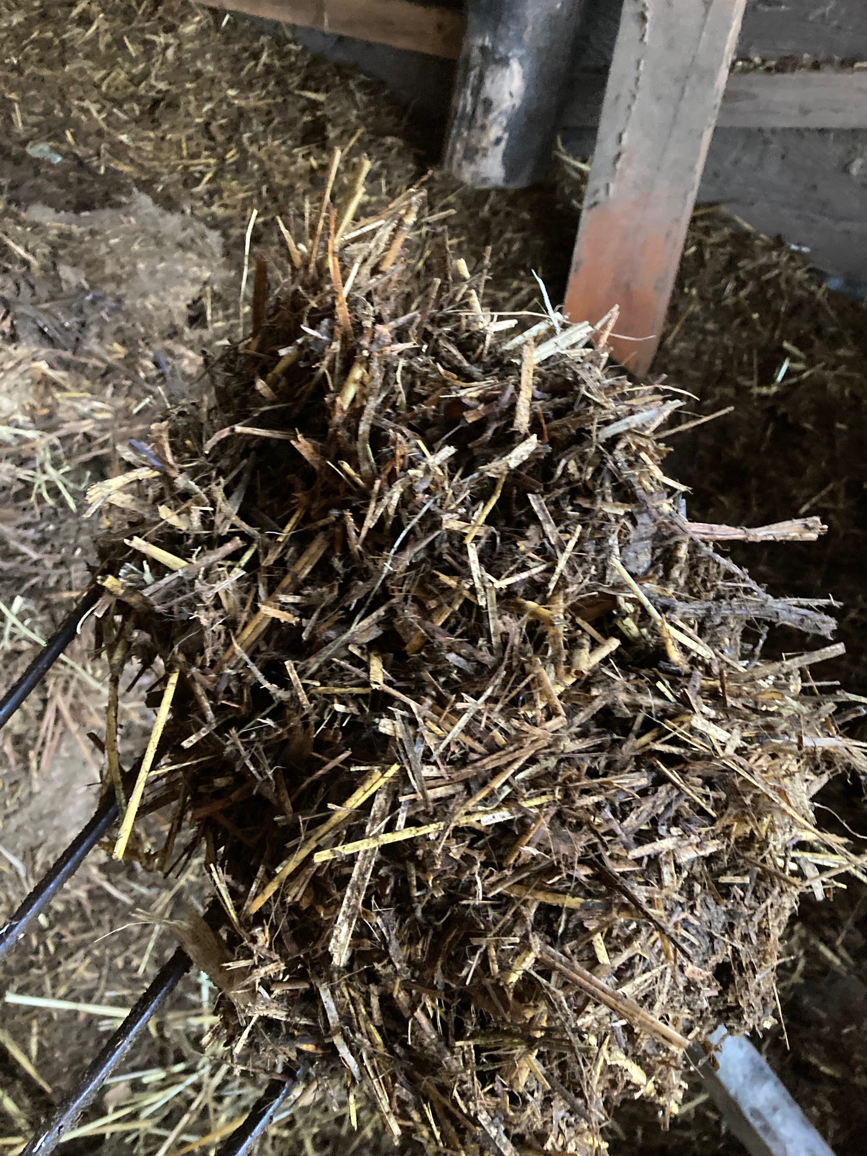 Many might bulk at the manure pile in their lives, but at Leafhopper Farm, it’s black gold with a few helping “hands”. Our deep bedding method supports manure breakdown with healthy bacteria. To maintain this decomposition, there has to be good air flow in the barn and turning of the bedding. Our chickens are great at turning, which can only be done in relatively dry bedding, so our sheep have to be out on the fields before the chickens can get at it. Once they move in, the compost gets an initial flip, then the fork takes a turn. At this stage, the manure is now broken down with straw and wood shavings to a fluffy mulch. We’ll get a lot of good soil for the gardens, and other planting areas on the landscape. Getting the animal to bedding ratio down is key to a successful deep bedding operation. In our barn, we’ve found that eight ewes is a great overwintering number to allow space and breathability to the straw that’s laid down. When we overwintered 12 ewes, our bedding input was too high, and we struggled to prevent anaerobic breakdown- which creates unhealthy off-gassing of ammonia in the barn. The sheep need dry, clean bedding which is demonstrated in the picture below. There is at least 4 inches of clean, dry straw on the ground for the ladies, allowing hooves to stay dry and clean, preventing hoof rot, encouraging aerobic decomposition with good airflow through the fluffy straw, and providing additional warmth from heat released during proper bacterial decomposition. On top of all that, we get healthy soil full of beneficial bacteria.