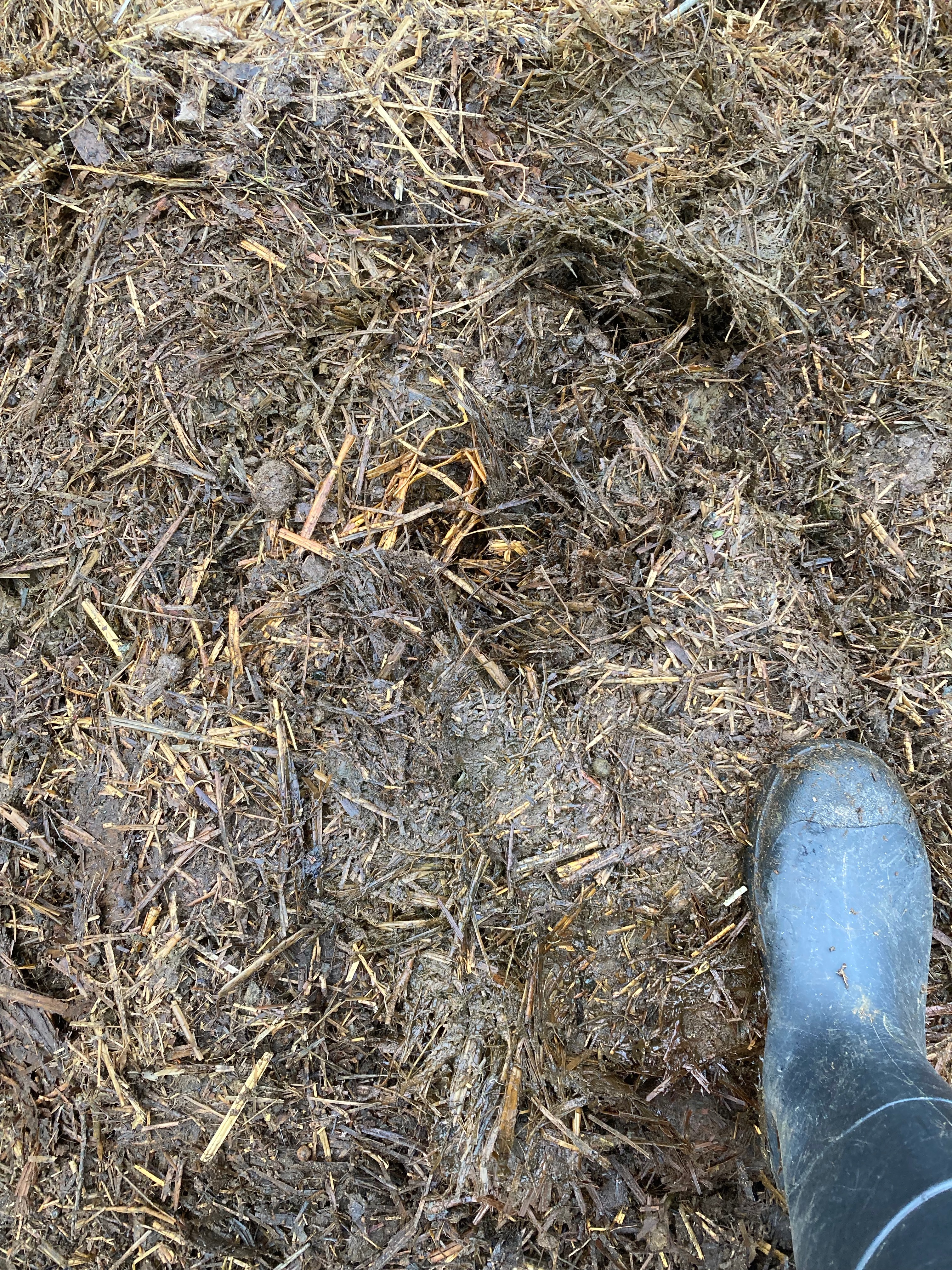 The manure and straw has become such an integral part of retaining fertility in the soil while producing topsoil foundation for future forest. Here in Western Washington, where there are intact second growth and old growth forests, the ground is a thick tangle of roots, fallen branches, and nurse logs supporting new baby trees under a protective canopy. The ground is well littered with fertility, building topsoil naturally from intact biomass that has remained in place without erosion damage. For clearcut land without the rich biomass of a forest, the fertility remains bleak, and in active agricultural fields, heavy reliance on costly chemical inputs to revive dead soil enough for crops. Those crops are mono-cultures, destine to be shipped away, removing any fertility that was present, much like the removal of the trees in a forest. The topsoil here at EEC is very thin in some places, so thin a tree trying to root in would find it impossible to break through hard pan after only a few inches of root anchoring, preventing stability for long term old growth development. This is why the manure input is so crucial to restoration of forest. Without the buildup of topsoil, the forest will take many generations of trees growing and falling over each other to repair the ground and replace the thick mat of fertility for large, old growth to return.