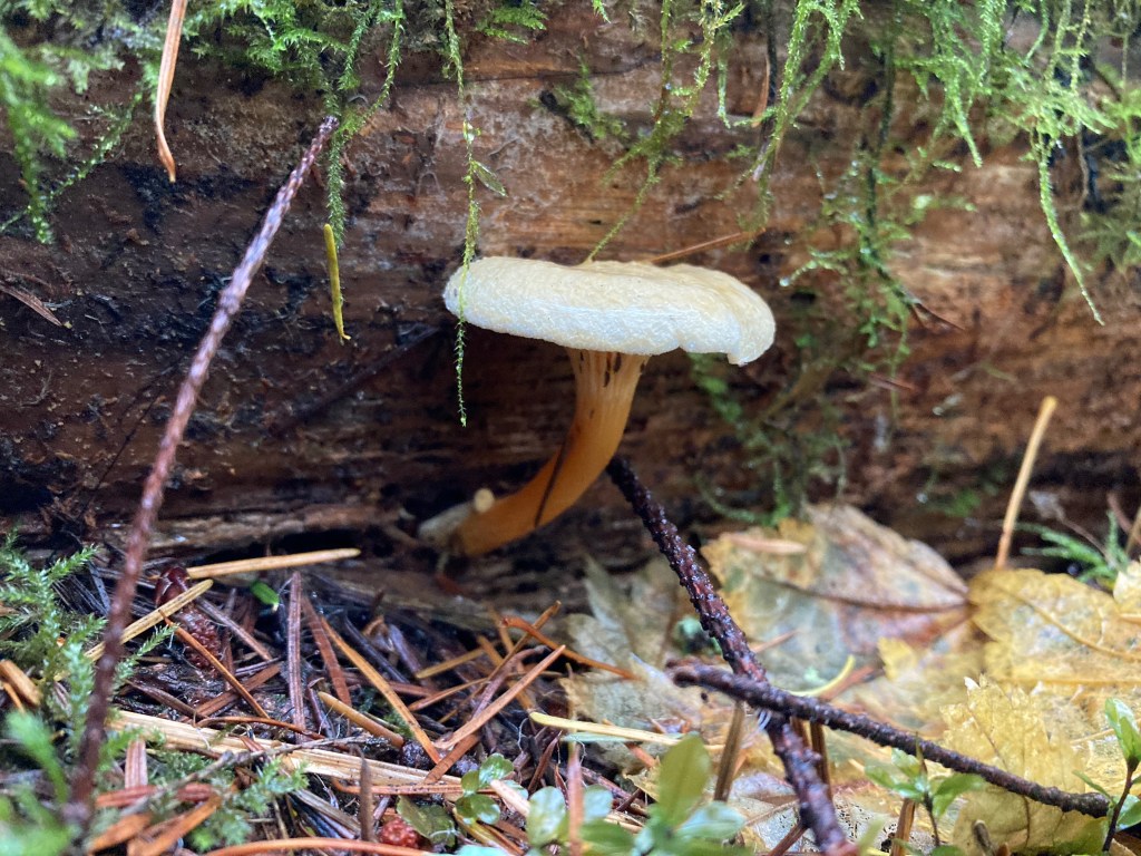 There are a great set of paths through this wetland area, and most of the trail remains above flood areas. That’s a sign of smart trail design with thought and care, unlike much of our development to date, which sprawls at best. The trail has a main rout through the public land into a greater lake park, with multiple entrances. Winding makes the journey longer, but there’s still a good buffer of forest without much human disturbance- for a suburb. Deer brows through, as they traverse the rest of the neighborhood, but they have to keep moving through, as the patch of forest is a larder stop with finite resources, and somewhat limited verity, but restoration planting has occurred, slowly diversifying the ecology for a more adaptive and productive forest. The diversity of fungus within most forests, boggles the mind, and yet, without old growth, there’s a marked difference in scale. Fruiting fungus- like the capped mushrooms we’re most familiar with, are much larger in old growth settings that I’ve observed. Chantrelles on the other hand, don’t pop up in old growth often, as they prefer younger, disturbed areas, like commercial fir stands, especially the 15-30 year old plantings. So again, every species has its preferred environment. Since this suburban public land forest is mostly fir, 20-30 years old, we’re in a chantrelle habitat, and I’ve found them here in past years, but this season, with the drought still on, it was the surface verities, mostly wood eating verities (not chantrelles), which were blooming in the light rains that had finally come.