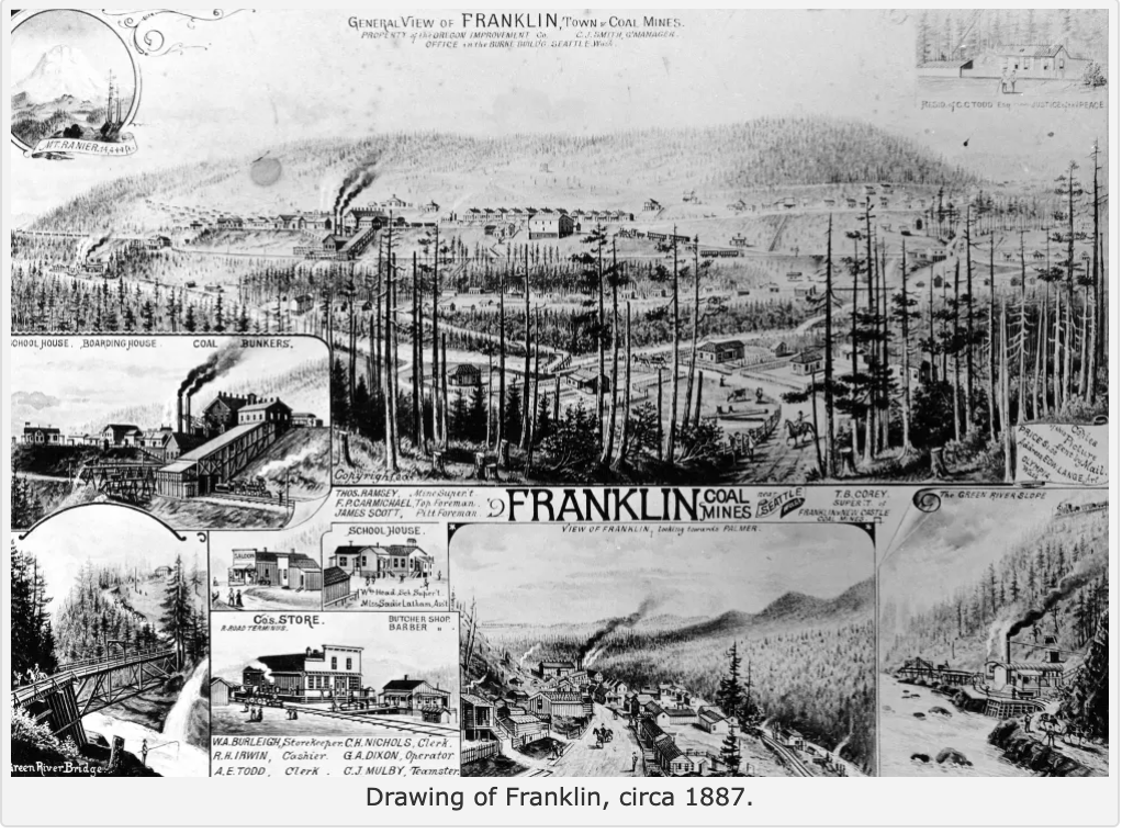 In the continued adventures of exploring new parts of Washington State, we took a weekend tour of The Green River Gorge; staying in Kanaskat-Palmer State Park, and visiting the abandoned mining town of Franklin, now owned and managed by the state. Ancestral home of The Duwamish Tribe, now The Muckleshoot, there is only the watershed title left as any legacy to First Nation People in the area. Dubious treaties restricted and removed tribes from their ancestral lands. Tribes thought they would receive reservation land around The Green River, but by the 1880s, corporations had founded towns and dug mines deep into the area with no plans of giving up the land to “savage Indians”.