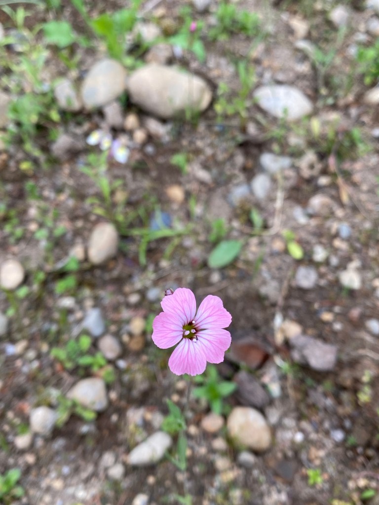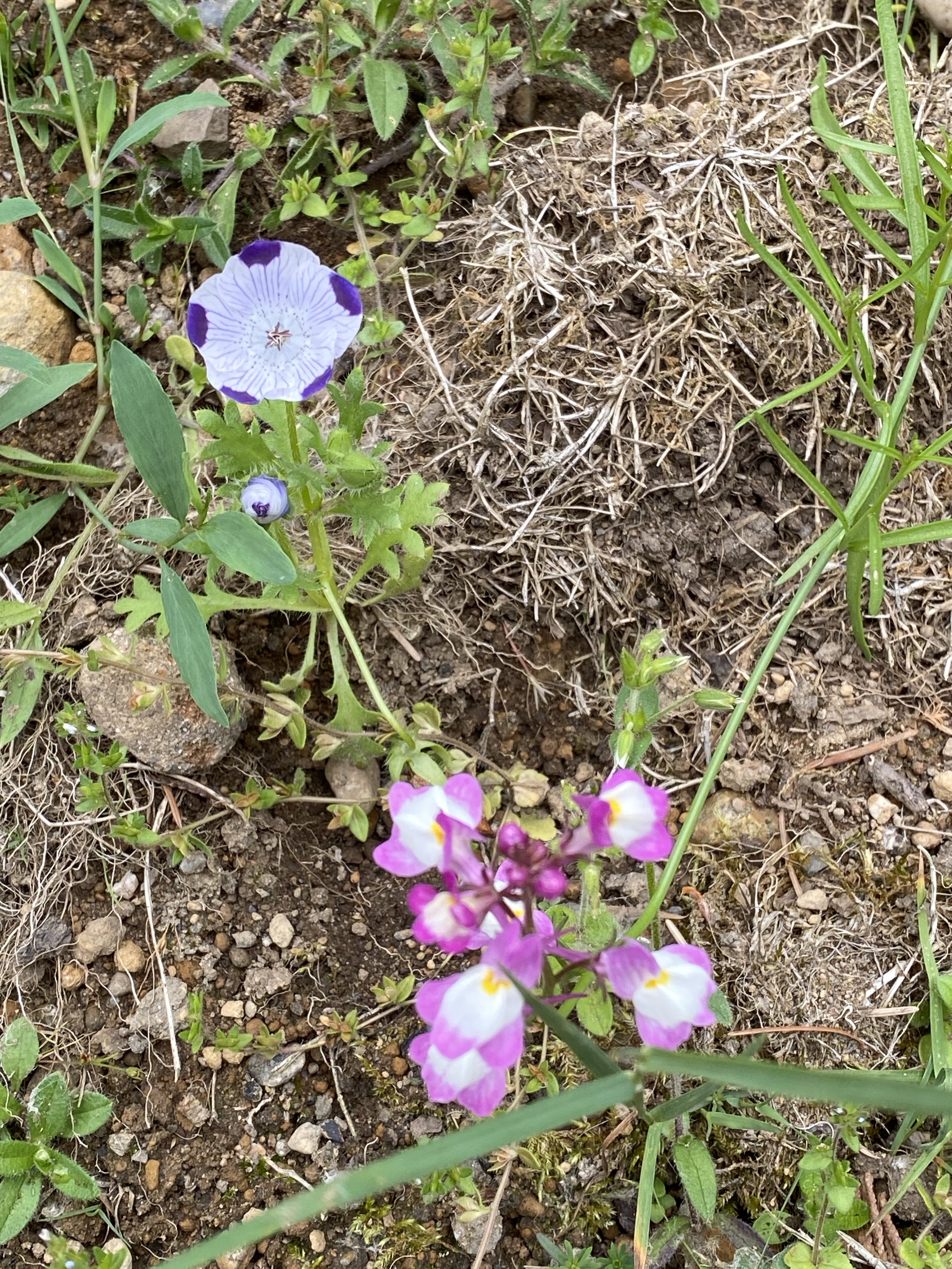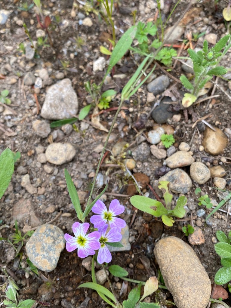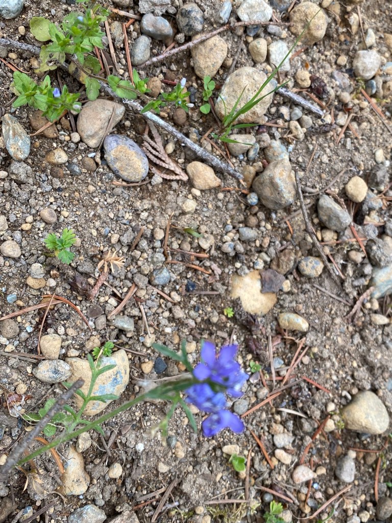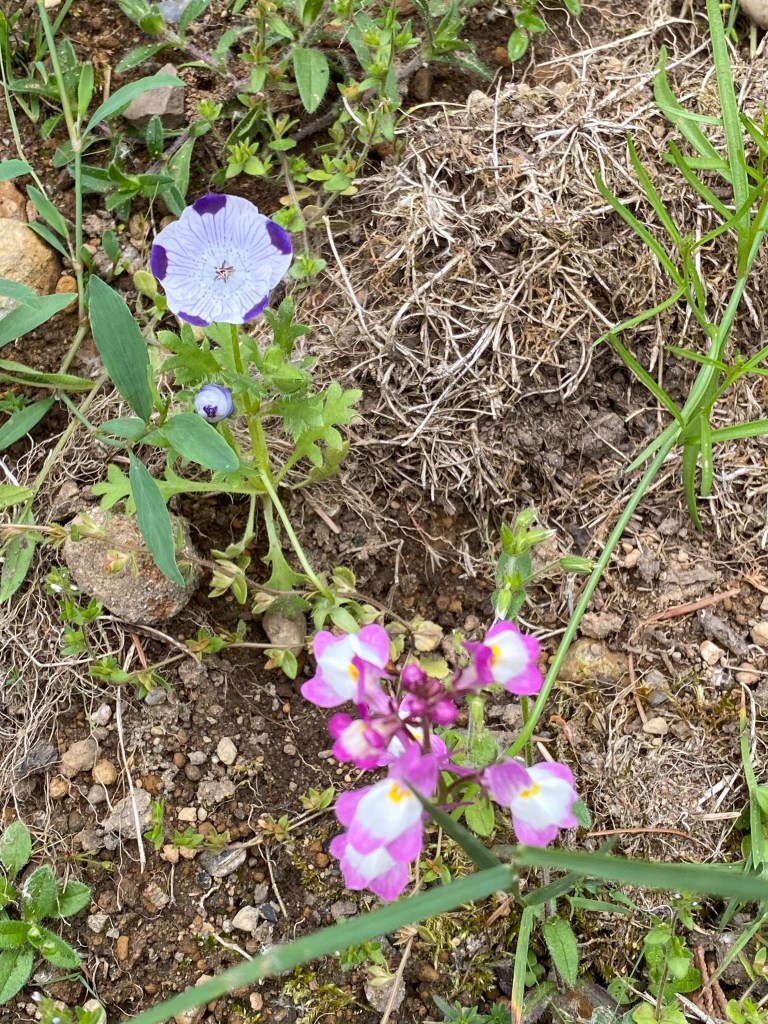 The small colorful smorgasbord of Spring wildflowers unfolds here at EEC Forest Stewardship. Seeds hand cast in April, germinated through May, and are now bursting with colorful blooms. This mix of Northwest native verities like Nemophila maculata and Collinsia heterophylla pictured above, offers familiar species of pollination crops with their intended pollinators. Note- just because something flowers, does not mean it’s feeding the bees and hummingbirds. Many cultivar decorative landscaping plant verities look abundant with blossom, but no charming summer insect buzz abounds.