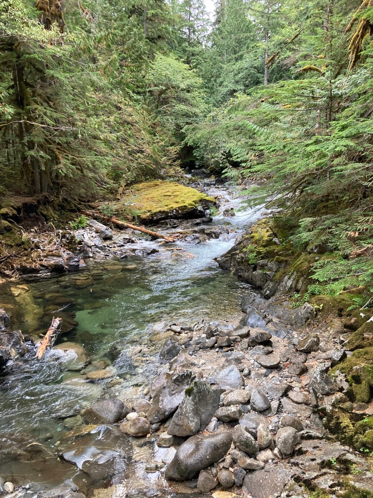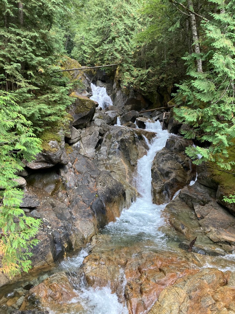 Deception Falls is another park further up rout 2. It’s a drive by viewing on the south side of the highway, or you can stop at the interpretive trail on the north side of the road for a short walk and more stunning views. This lovely cascade seems tame today, but in a major rain event it crashes violently down the jagged rocks and even throws water out onto the edge of the highway at peak flow. This glacier fed stream has an icy blue color, which continues down into catchment pools below. The interpretive trail explains the water is sterile, fresh off the peak, and without enough living content to facilitate fish. It’s got to spend some more time mixing with the soil, bacteria, and other living organisms of the land to become active. Melted ice water is quite cold, so if you want to take a dip, make sure you bring a set of warm cloths to change into and don’t stay in long.