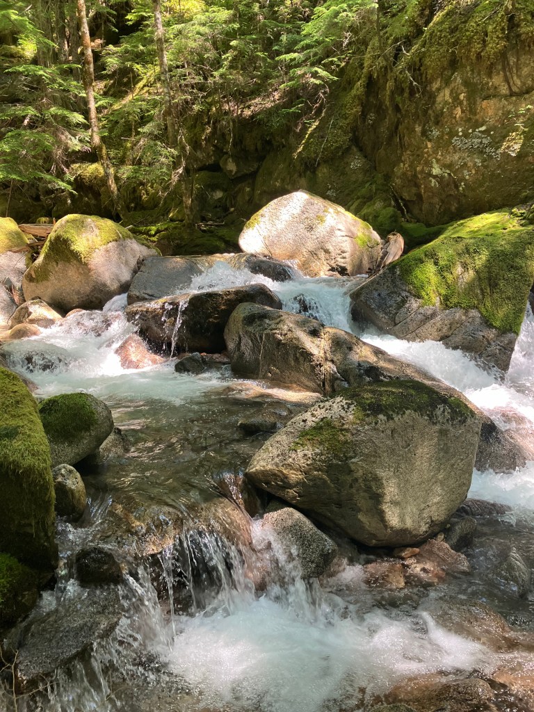 I could sit all day watching this water cascading down the mountain, it’s a great meditation on a hot summer afternoon. This creek was warm enough to wade in, and I spent some time carefully stepping over the slick boulders and into different pools. There is not a lot of wildlife in these young waters, as the sediment and nutrients necessary to support flora and fauna is still getting mixed in further down stream. Geology in these young streams is impressive, and you’ll find all kinds of strata within these moving waters. There is a lot of granite higher up in the mountains. Where as the lowland rivers, post glaciers, has a broad range of rocks from mountains all over the west, brought down through millions of years of erosion in time. That’s part of what makes The Cascades so interesting. I’m still learning so much about the surrounding ecology that makes up our small acreage here in Duvall.