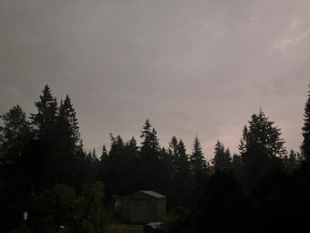 To many, this event may not seem like anything too special. But here in Western Washington, thunderstorms are a rare treat. My parents happened to be visiting that weekend, and they commented on the alien sounds the storm produced. Thunder here is often muted by all the surrounding mountains. It comes in slowly, and usually lasts a while as it rolls. Sometimes you’ll not hear any thunder, as the storm is far enough away to be muted by the thick forest terrain. Other times the cracking sounds shake with such force, you begin to wonder if a volcano is not also going off nearby. This storm was quieter, but still carried thunder in the clouds. The videos I took do not give full audio well, but the cacophony was a welcome, though brief visit from the storm.