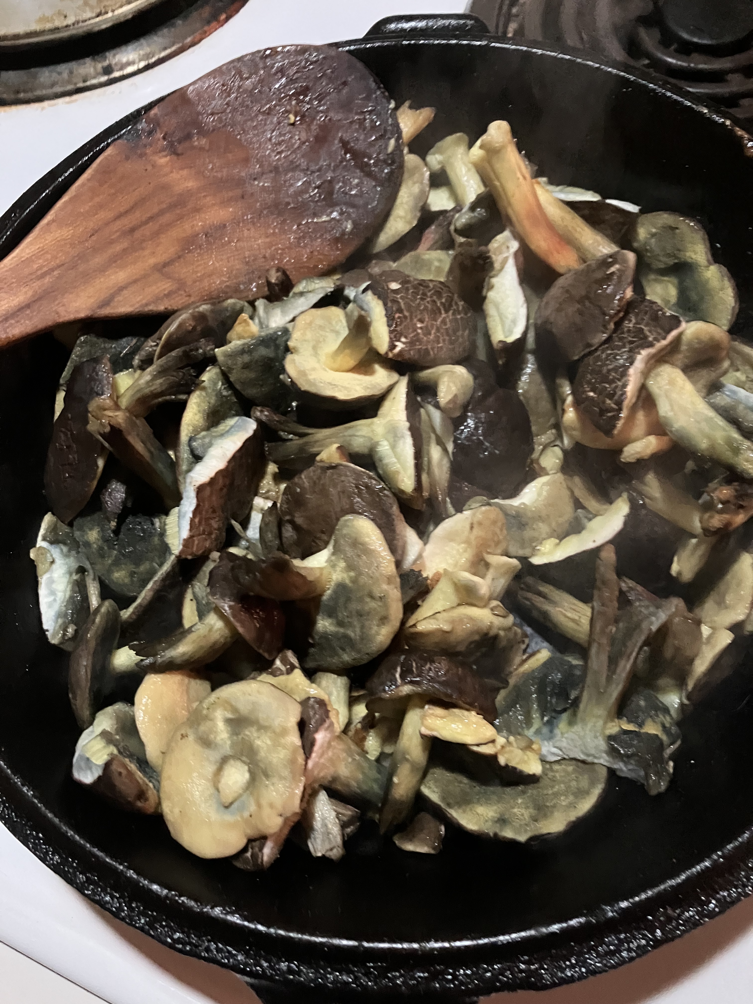 No oil should be added until the mushroom are browning, then I usually add butter or olive oil if needed, bacon grease if you are decadent. These mushrooms when into a tomatillo sauce with a little chicken. What a tasty fall treat! Any mushroom cooking I do works best in the cast-iron skillet. From Porcini to these humble cracked boletes, the mushroom spring brings ample flavor from the decomposition all around. Great thanks to the mushrooms and their close connection to this table and the complex ecology all around. When we can eat from the space we tend, there is humbling abundance and direct tending like no other I’ve ever found on this earth. It’s getting close to what I call, original instructions- like any other living organism, we eat, and we drink, interact with what’s around us, and become part of our ecology, which is more screen time and commuting for many. I’m staring into these figments of light shapes as word, typed, for written script is as rare as any hunter gatherer societies in The United States, well, maybe not that rare. I’m hunting, and gathering, so there’s one, but one does not make a society.
