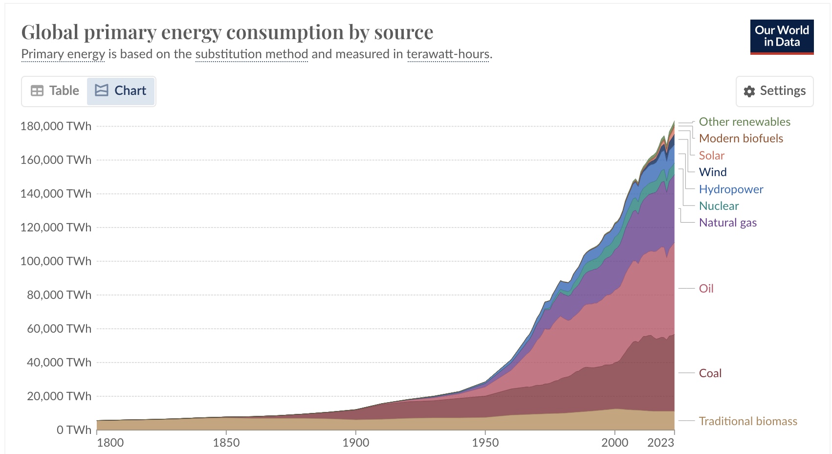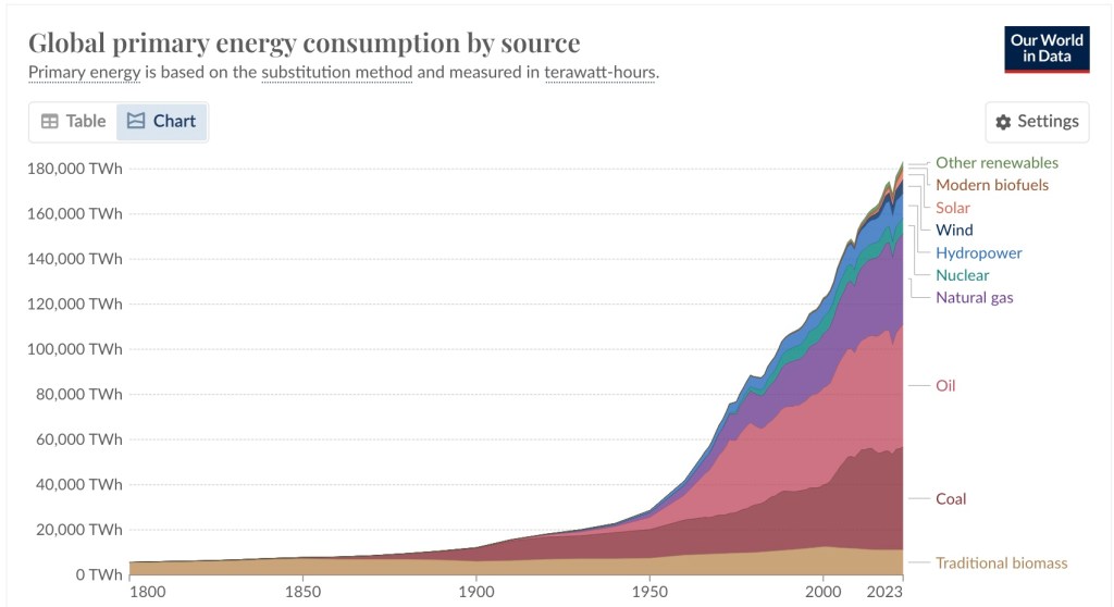 The little blip is 2020- COVID shutdown of world goings-on. But the rise is consistent with industrialization into commercialization. The green energy trend only ups consumer capability- we’re not stopping the fossil fuel endeavor, just adjusting for futures in fraud coin. The AI consumption alone far outpaces any daily gas guzzling SUV use. Orders of Data Magnitude should be on our minds. These data storage complexes will be our consumption future on screen time and digital worth. At least trying to maintain some in person activity and outside connection. That’s why I’ve chosen this lifestyle on the land and worked on craft and mentorship in community. Even supporting one or two other good people in a personal quest, shared purpose, and a sense of humor, also a sprinkle of patience- there’s good stuff of life worth living outside the digital sphere- but sometimes, enhanced by brief interludes of social media. I prefer texting, emails, or snail mail when possible. There can be equal connection through online screen time- maybe? I don’t think the social equity compels.