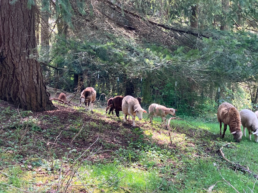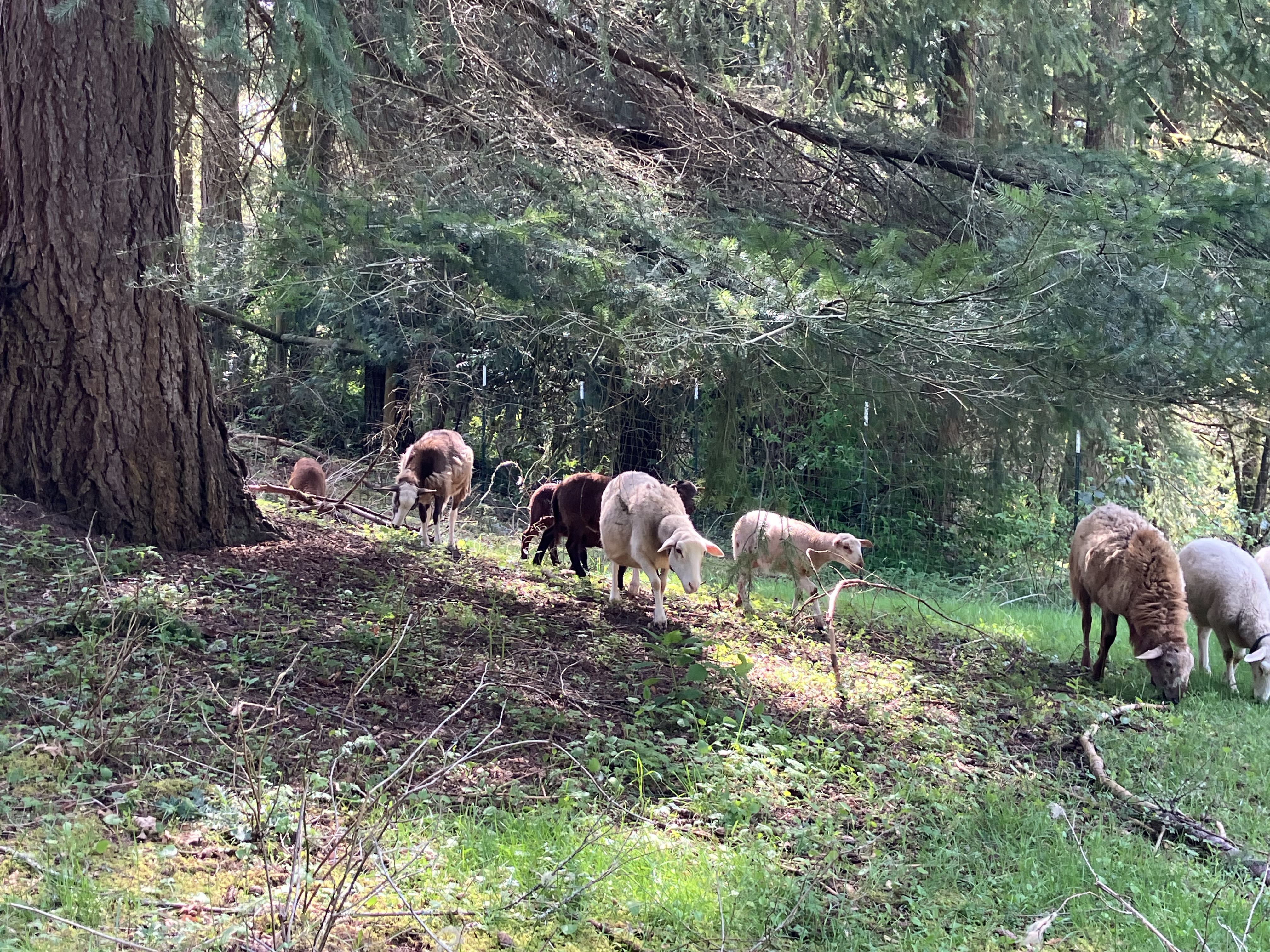 The sheep want to be on fresh pasture, and they call from the barn with passion when I come down to check water and feed. It’s important to watch grazing impact in the early days of pasture growth, and the forest floor is vulnerable, with most of the young tree seedlings germinating right now. This is why certain parts of the forest understory are fenced off completely, otherwise the sheep would graze away all the young growth. These browsing sheep love taking broad leaf snacks from the shrubs and trees, as well as grass and vetch. If they graze away all the young growth, it will be harder for the ground cover to remain thick and healthy. This is the dance year to year with grazing. Things are so different through each season. Last Spring I was able to constantly have grass and keep grazing. This year, things are lush, but fragile. I’ll be culling more sheep earlier this year, and planning to buy hay sooner.