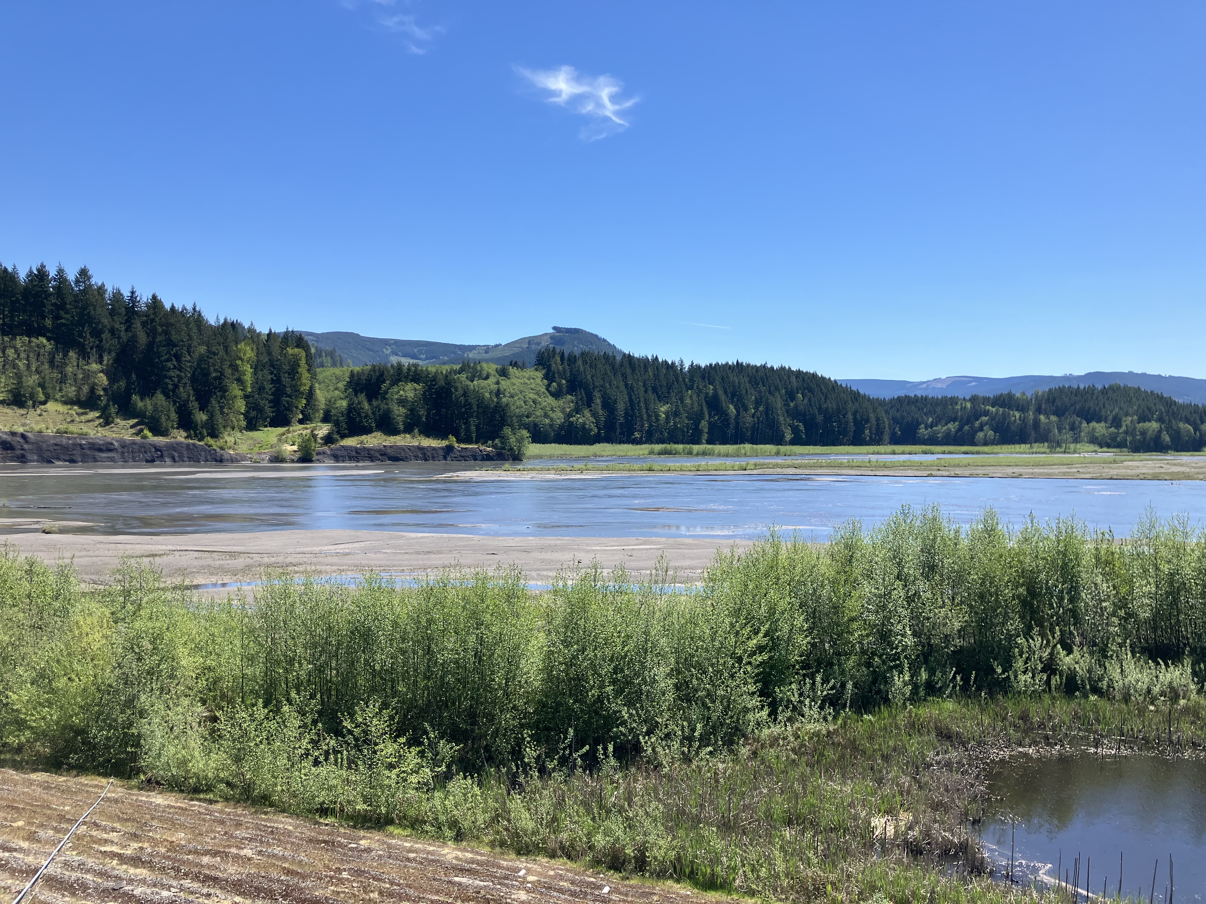 We stayed at Silver Lake, near the town of Toutle, which was the major emergency evacuation point during the mountain’s eruption in 1980. The area is about 20 miles from the volcano, and just at the edge of the blast zone. The Toutle River famously carried most of the lahar, which came off the mountain during the eruption. There is incredible video of this part of the disaster, which you can find here. The mud flows caused by lahars further down river, blocked several of the tributaries feeding into Toutle, which formed Coldwater, Castle, Spirit, and Silver Lakes. All five are now monitored and maintained by The Army Corps of Engineers to prevent future flooding in the towns and cities down stream. A huge sediment dam was constructed, to slow erosion as the ash and debris from the 1980 eruption continue their journey down from the mountain over time. This large man made structure offers an easy hike, some good signs with interpretation of the area, and interesting views of Loowit from the valley floor.