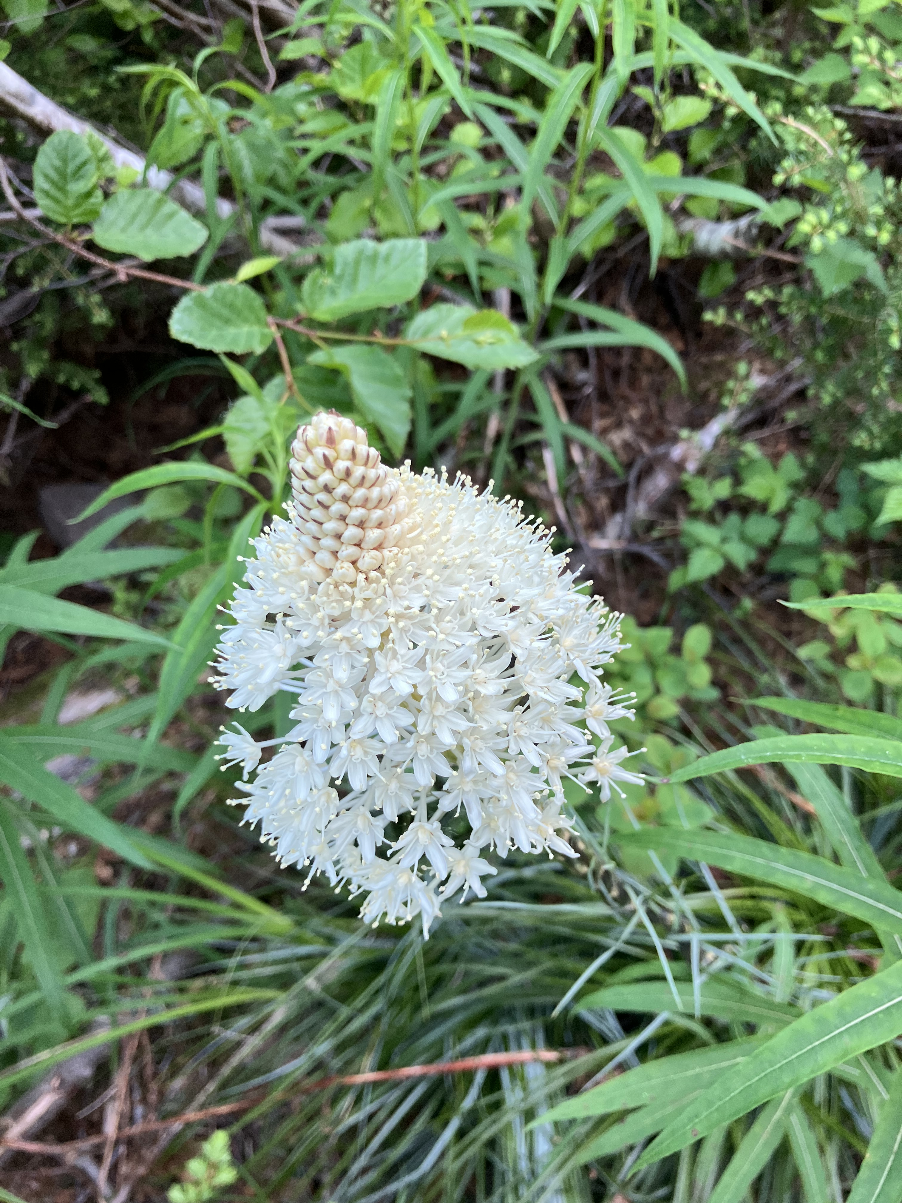 I walked about 100 feet along the overgrown road, looking for more recent evidence of wildlife activity. I came to a place in the trail where the animals went up a dirt and clay bank, leaving the road for the thick woods, probably heading up into sheltering spots on the higher ground. There were many tracks in the dirt, but no recent bear. I figured the bears would be more interested in seeking fresh plant growth, young leaves and flowering herbs covered the area. I began to note each species, all in flower, or close to it.