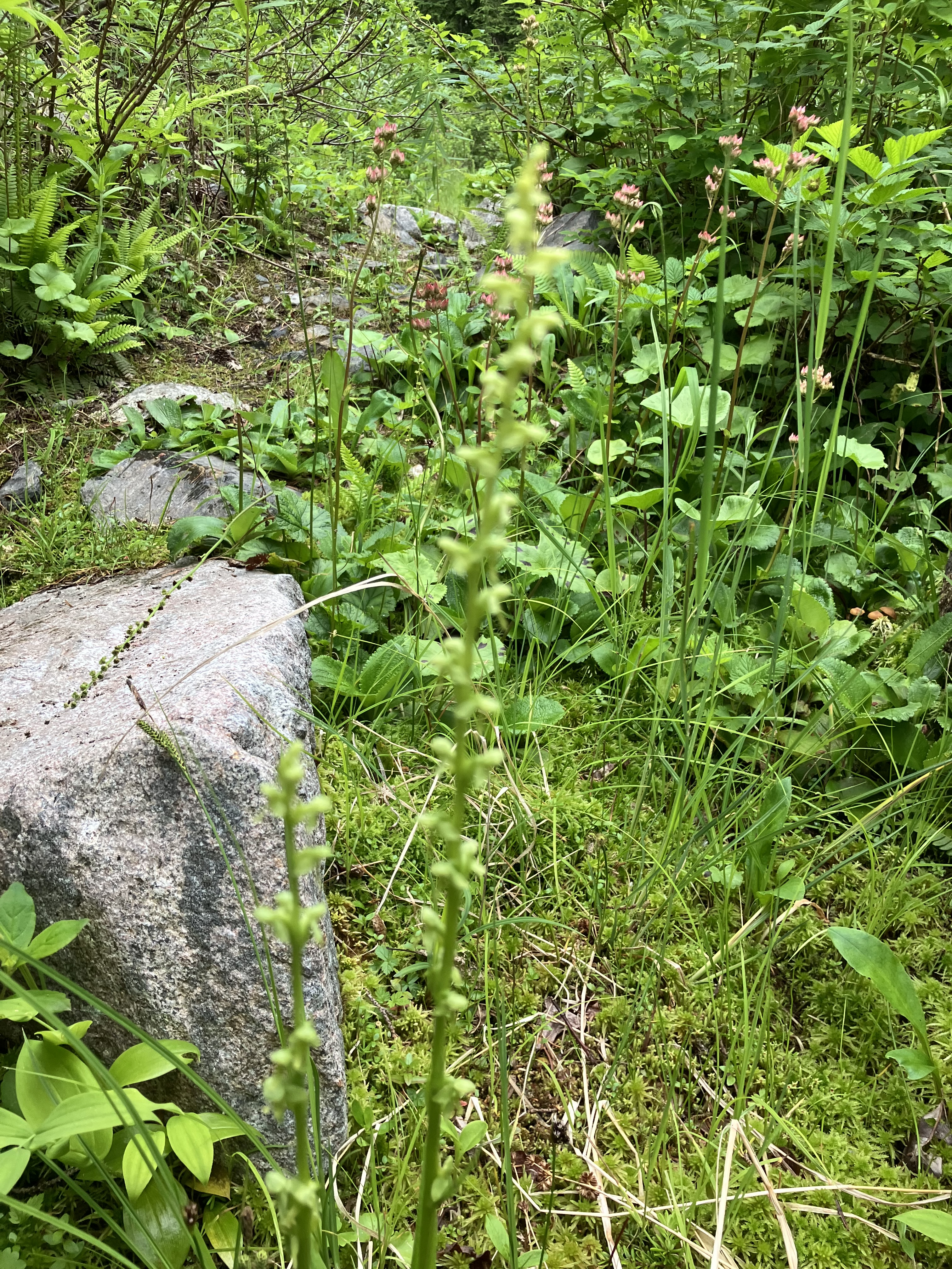 Besides the wildlife and water features, this hike goes through some rather special plant communities that specialize in rock faces and mountain seeps. From bear grass to tall bluebells, the plants are off the hook out here. My guess on why this once logged area is still so diverse has to do with allowing the original seeds of the place to germinate and return. When we clearcut, spray, replant monoculture, spray, and cut again in less than 40 years, it degrades the landscape and does not allow seeds to recover in a year or two. Once the plants are removed, only the original seeds can bring them back. In the active logging farm, none of these rarer wildflowers, herbs, and shrubs can be found. Here at elevation, the logging was not worth the trouble after a one time lesson, so the land has been left to its own recovery, and the vast native plant diversity is on show. The orchids were hard to get in focus, they are so small. Wetland plants are sensitive, and because people have been draining wetlands for so long, we often miss the beauty found in these delicate, rare ecologies.