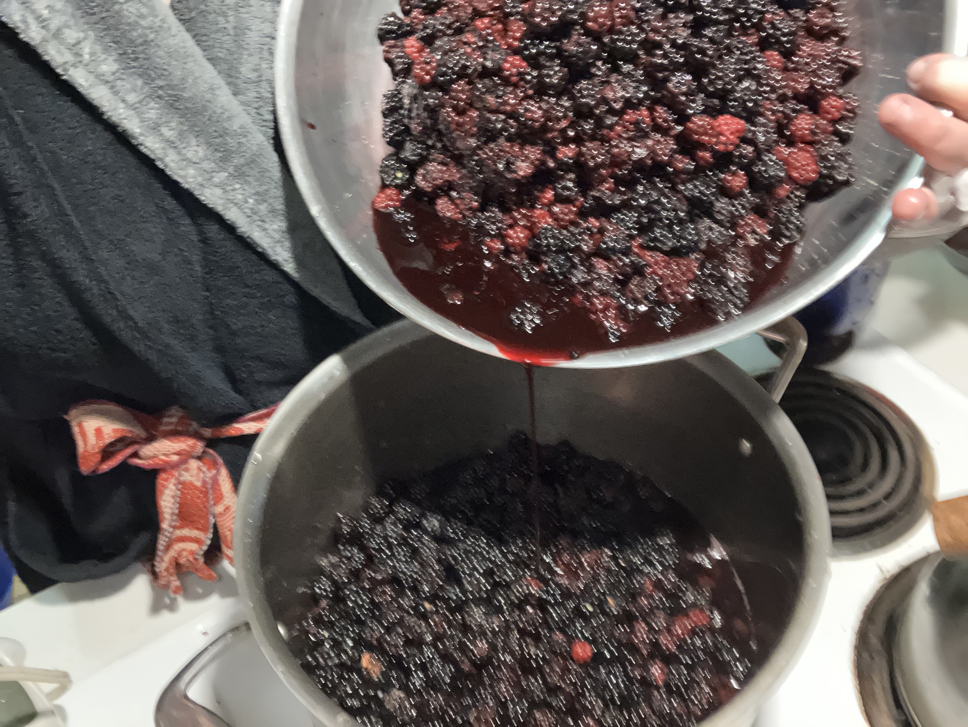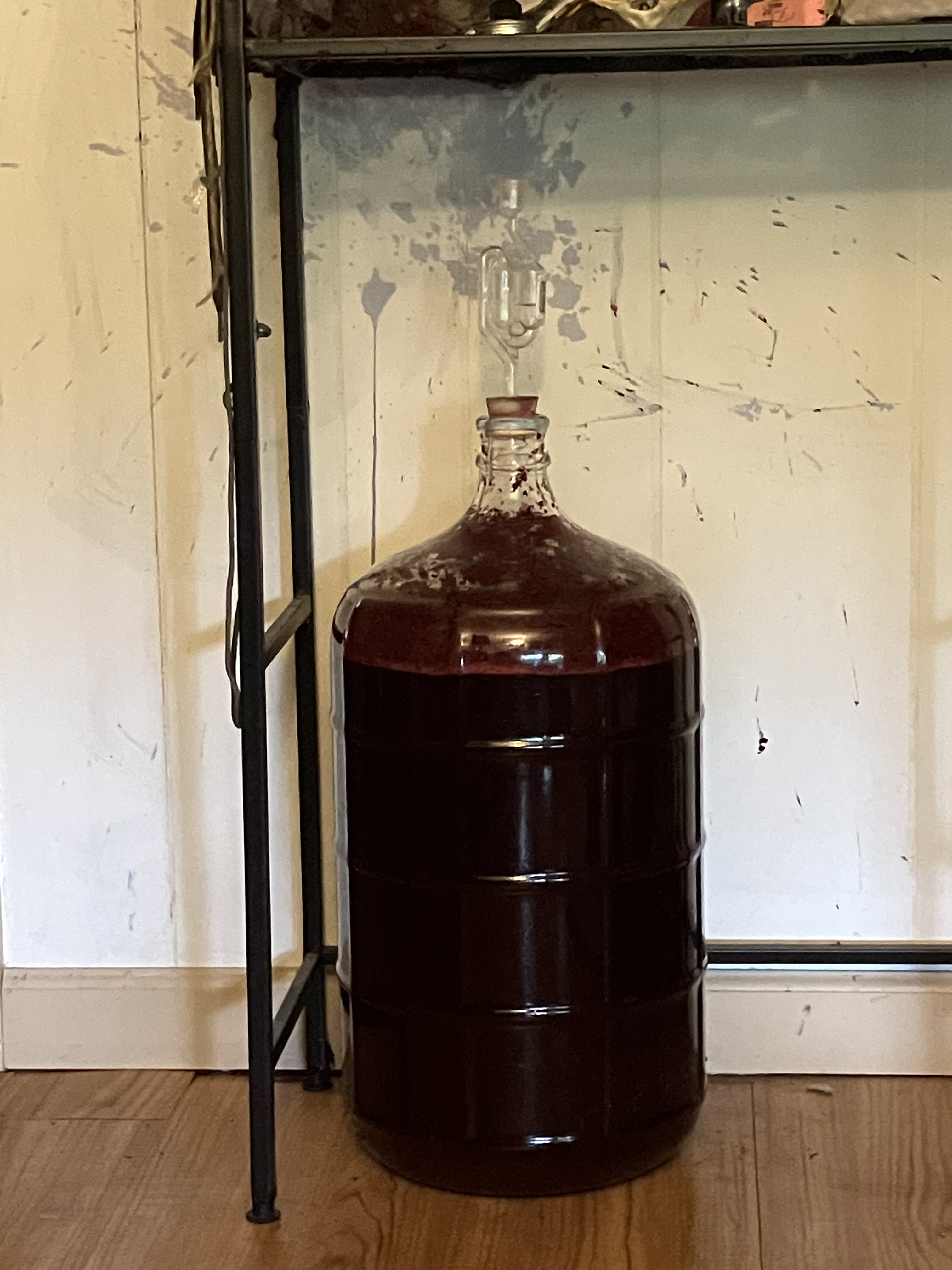 The last two weeks of August have signaled the start of fruit harvest. Blackberries have been particularly abundant this year, and as I’ve been cutting back the bramble cane, I’ve picked fruit from the invasive hedges of Armenian Blackberry on the fence lines around the property. There is a sweet reward from all that bramble, and I’ve been taking full advantage of this corp for many years. This year, 2025, was the best yet, with about 60lbs of fruit picked and crushed, then heated and strained into two five gallon carboys for fall fermentation. Blackberry wine is divine, and I look forward to bottling the end of summer sweetness to uncork in the cold dark winter to celebrate, letting a little of that summer warmth pour into our festive cups.