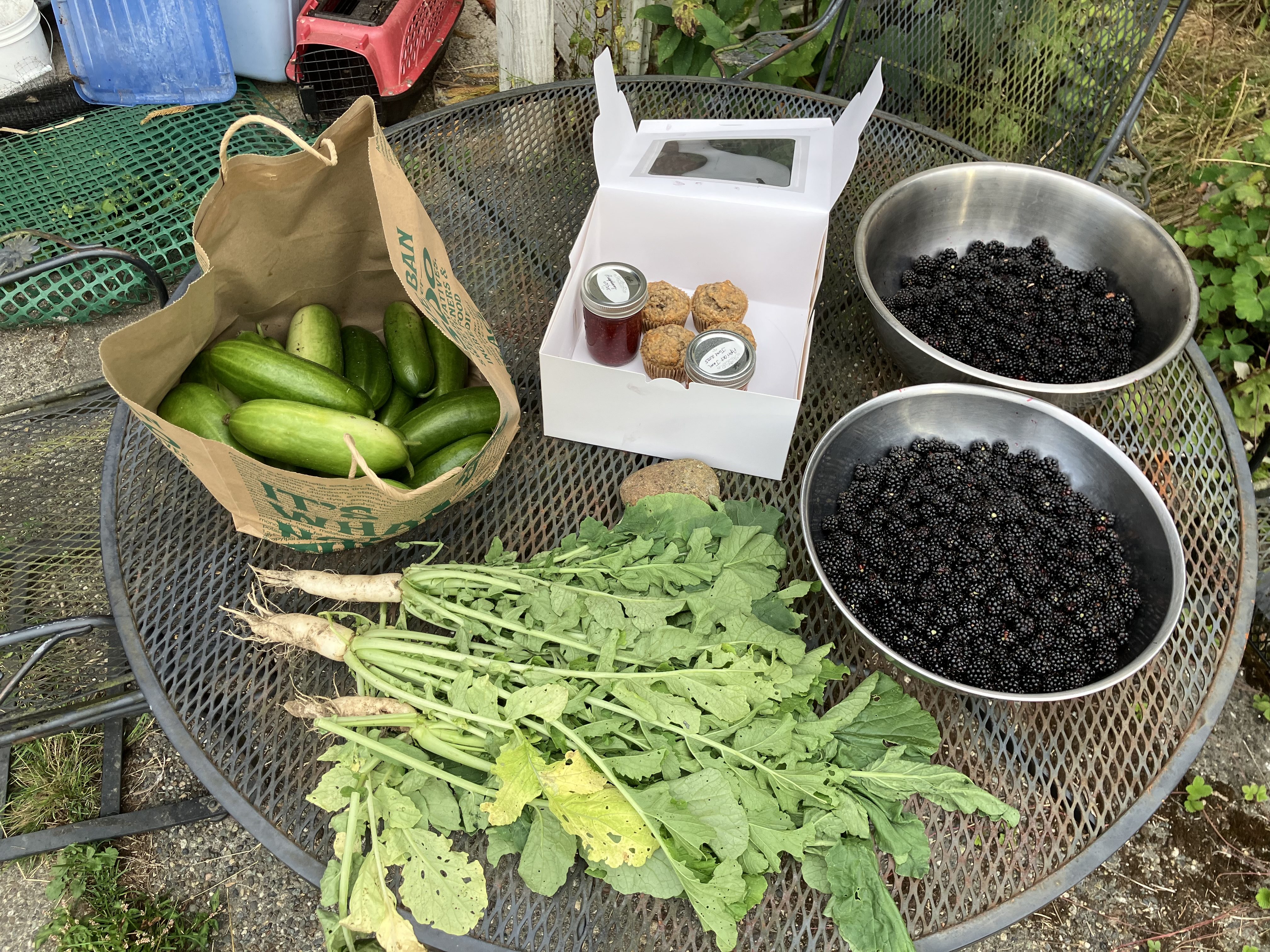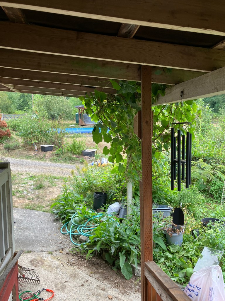 It’s great to invite others for some evening pick your own. This year has produced enough bounty for 3 blackberry harvests over a month and a half. The right warmth and full sun brought on the flush of sweet reward, considering the aggressive nature of this Colonial introduced species. I’ll reflect on the fact that all this fruit is Colonially introduced, even the hybrid crabapples (far left below), are a far cry from q̓aʔxʷ. That’s Lushootseed for Pacific Crabapple. Pacific crabapple trees were prized by tribes as a late summer, early fall food crop. They preserved them in watertight boxed underwater! The advanced technology there is astounding, removing oxygen from the slightly cooked fruit for preservation. Let’s see ya carve or weave a water tight container, then fill it with the slightly cooked crabapples, and store it for a late winter food source. No plastic or complex global trade to meet basic needs, though the fruit was traded widely and often eaten with animal grease. Now, could the crabapples feed the cities of today, no, never. Well, maybe if we concentrated all our efforts on regenerative, climate resilient food growing and stepped back from our screens a little more. With population as it is, due in huge part to industrial processes that make more in the short term, but cost dearly in the tailing arc of human existence, we’re overtaxing what there is of this finite life.