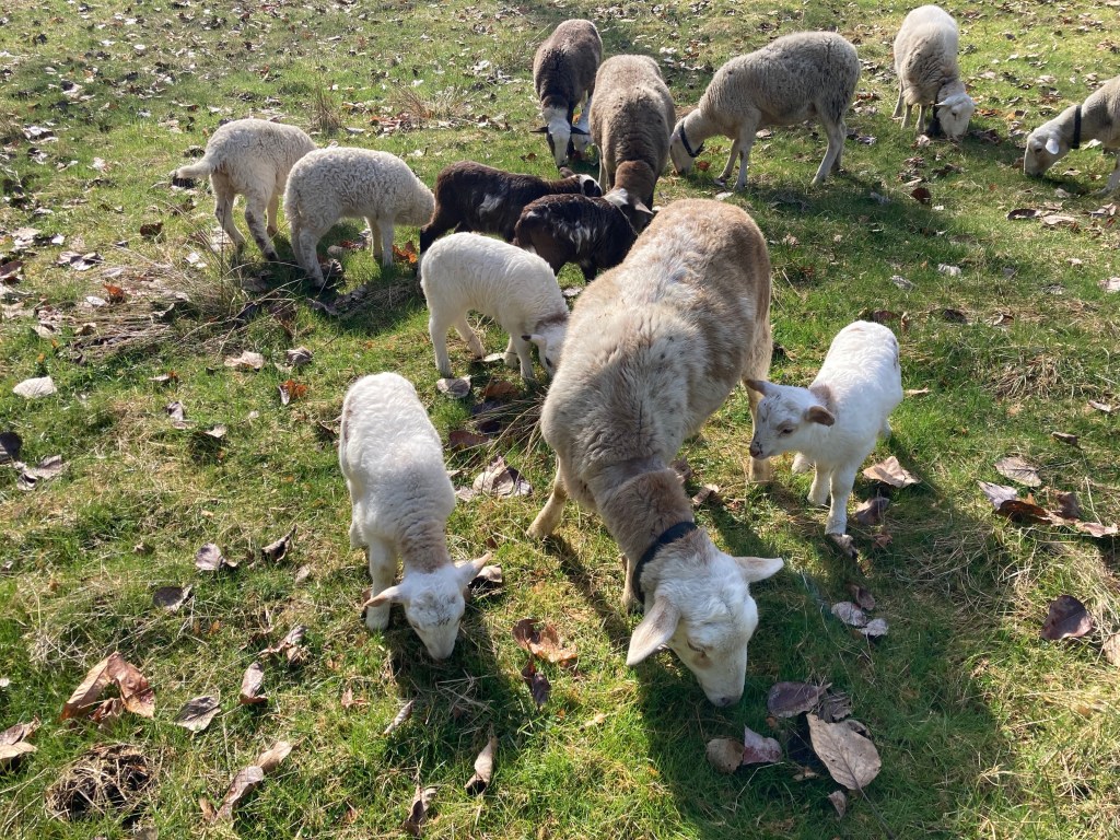 For many years, Leafhopper Farm has raised meat goats, which cleared massive bramble, and opened up the landscape for replanting. This stewardship practice is now shifting as we go from goats, which are like an abrasive scouring pad for the land, to sheep, which maintain a manicured tending of specific pasture spaces with much more limited access to the forest, where most of our restoration work happens. All our stock is contained and rotated using electric mesh netting in a very successful holistic grazing management plan.