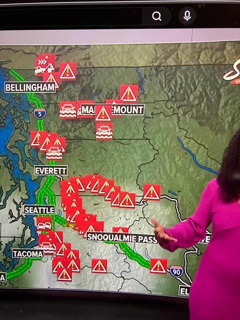 It first showed up on the radar as a ghostly horse head- lurking off our Pacific Coast, gaining speed and intensity over the ocean. Western Washington was already experiencing some rain, with atmospheric rivers projected to arrive the following week. This satellite picture was taken on December 6th. Then on the 8th, a full white horse head struck. I’ve used this animal metaphor along with the satellite shapes to track the history of this monumental flooding. It’s a once in a decade “100 year” flood, with record breaking rivers jumping banks, levies, and bridges across the western part of our state.
