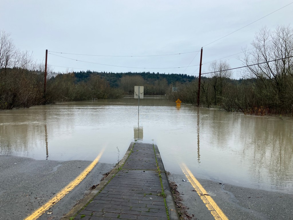 By Wednesday evening, the rivers were jumping banks and evacuations were in place. Our main road in and out, Woodinville-Duvall road, was still open into that evening, everyone had a chance to move equipment, pack up and head out of their homes, and get livestock to emergency safe space, like The Evergreen Fairgrounds, which offer free stalls and dry space for livestock. I watched a news segment about a dog shelter in Everette that was scheduled to flood, and they found foster care for every animal there after a public plea for support. Still, some people have chosen to stay home, and they are now being evacuated by emergency services, which have to put their lives on the line needlessly. This is important to reflect on when you think you’ll just sit tight in a projected flood warning- you are putting other people at risk when you don’t heed evacuation warnings. So, on Thursday morning, December 11th, some people were still shocked to find the city cutoff by flooding.