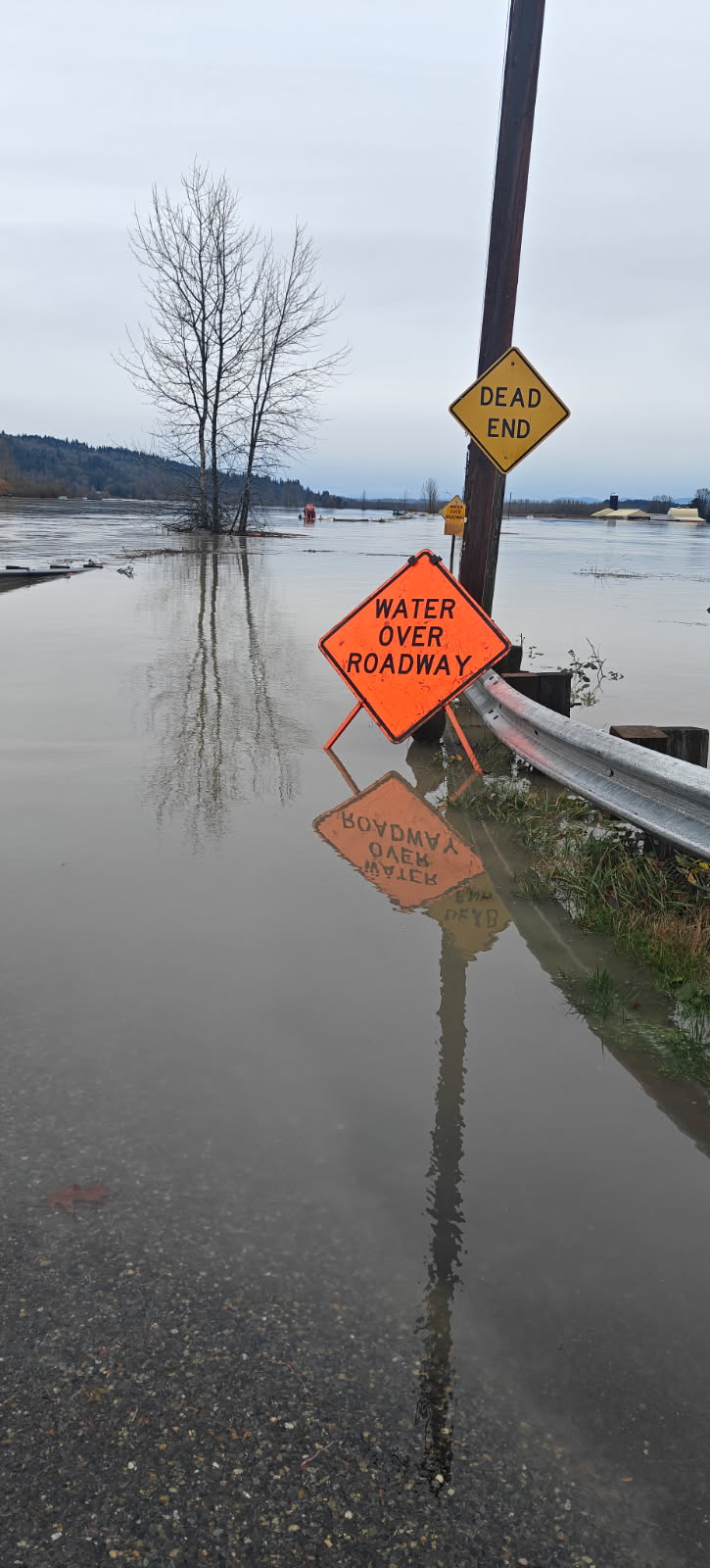 The morning adventure around the flooded roads of our town was epic- with pictures of all the cutoffs due to water over the roadways. This shot of the 124th bridge shows how much water is over the road. This access was flooded out on Wednesday, late morning. I was just driving back from picking up some paperwork in South Seattle, and had to take a detour up the road to Woodinville-Duvall rd., which is now flooded. At that time, the road was only just underwater, but now, no one could get through, no matter how jacked up their truck might be. On my way out of this area, I watched a guy launching a boat from the roundabout. That was surreal. We were not sure why they were launching into a major flooding river, but did not stick around to ask. Let’s hope it’s not another cause for rescue workers to be out trying to save people that had no business being out on the water at this time. Again, the best thing you can do in an event like this is stay out of the way and not try to be a hero. We parked in a designated parking area to look-y-loo. We did have to turn around in the middle of the road that was closed on north hyw 203, but there was no traffic, and we did not try to forward the road into the water- others did, and that’s what will get you swept off the road and into trouble. Please think about the other people who will have to come get you if your antics fail.